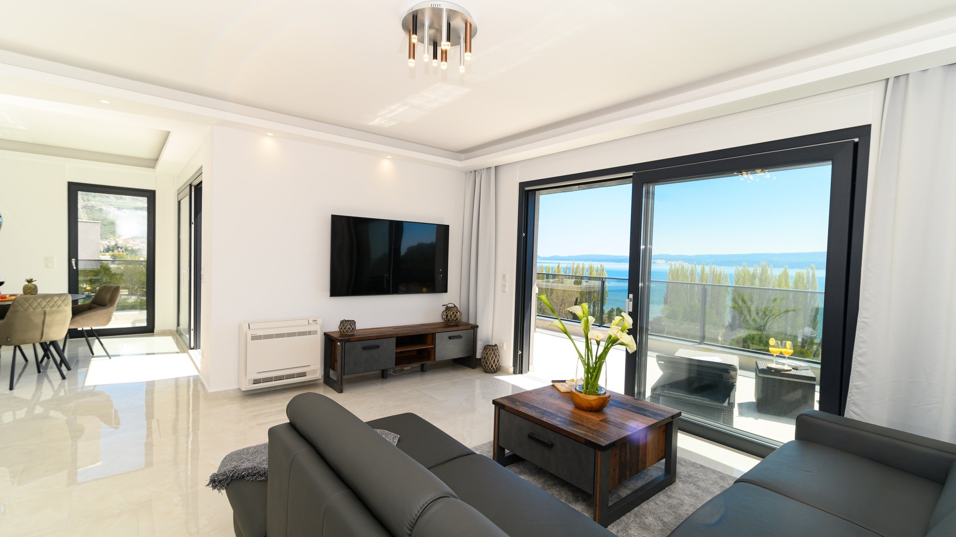 We offer for sale a unique modern villa with breathtaking views of the sea and islands, located in an excellent and sought-after location on the Dalmatian coast. The villa, with a total usable area spread over four floors, has three separate residential units and a large relaxation area, making it an ideal choice for private living, luxury recreation, or a high-yield tourist investment.