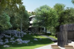 The villa is situated on a plot with a total area of 1,180 m² and offers breathtaking panoramic views of the sea, the marina, the towns of Opatija and Rijeka, and the surrounding islands of Cres and Krk. The property is designed in an arc shape that elegantly winds between mature trees and rock formations. The house has four floors and a living area of 394 m². The roof terrace is equipped with a golf putting green, swimming pool, whirlpool and luxurious outdoor seating area with sea views.