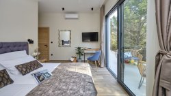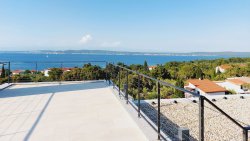 The second floor offers four bright bedrooms with en-suite bathrooms. Large glass walls provide breathtaking views of the surrounding countryside. The villa also has a roof terrace with panoramic sea views and an outdoor children's playground.