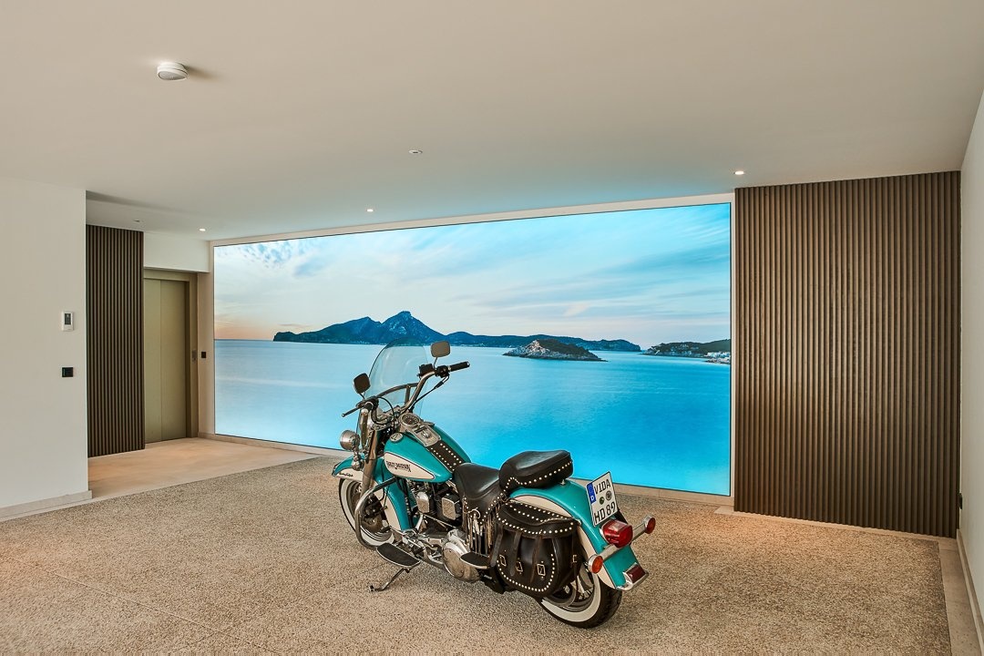 The villa also includes a saline infinity pool of almost 13 meters, a spa area with fitness studio and yoga area. There is also a wine cellar, a solar system and an almost self-sufficient energy solution. For convenience and security, the villa offers an elevator, an alarm system controlled via a mobile app and insulated glazing.