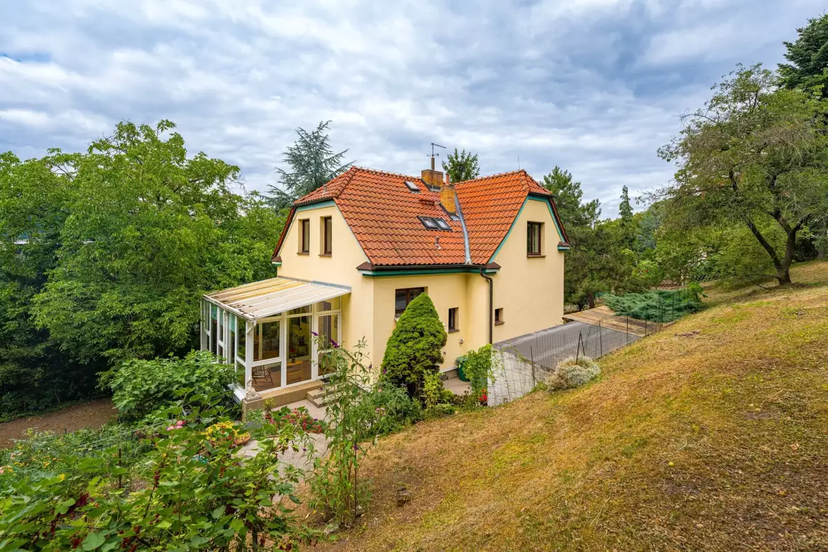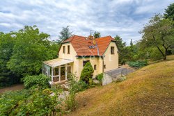 We offer for sale a three-story villa from the 1930s in a quiet part of Prague - Modřany. The villa with a beautiful garden with mature trees ensures maximum privacy and breathtaking views of the surrounding area. The villa stands on a sloping plot of 1,644 m² and offers a floor area of 239 m².