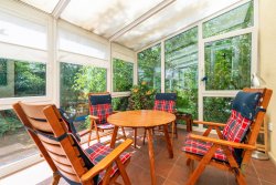 The property includes three separate garages, one outdoor parking space, and a lift from the garage directly to the garden, which is a great advantage.