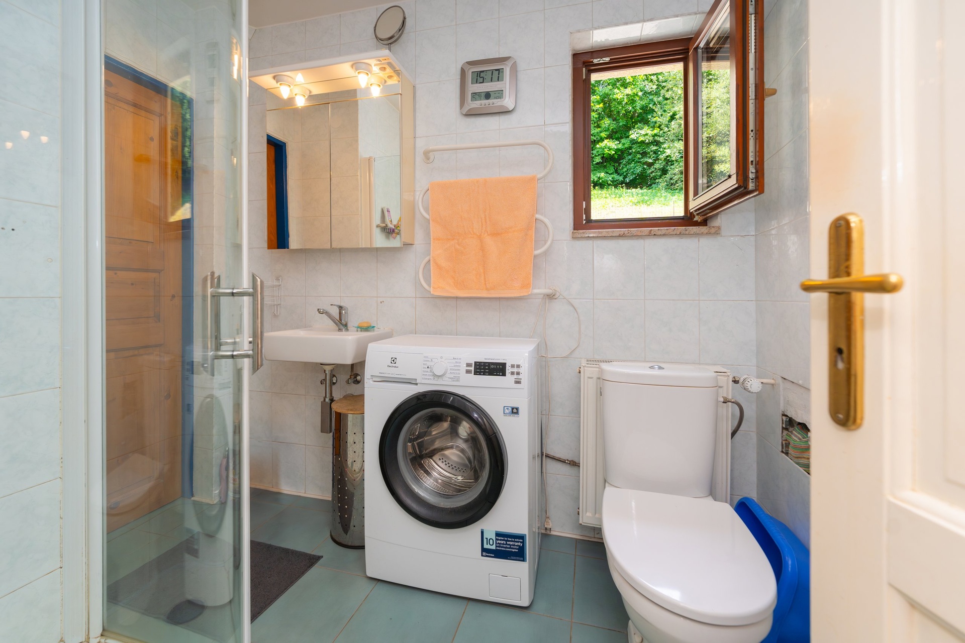 Heating and hot water are provided by a gas boiler. The house is connected to the municipal water supply and sewerage system, and there is also a private well on the property.
