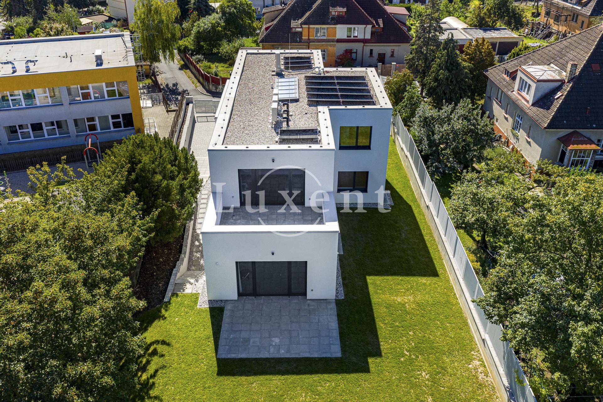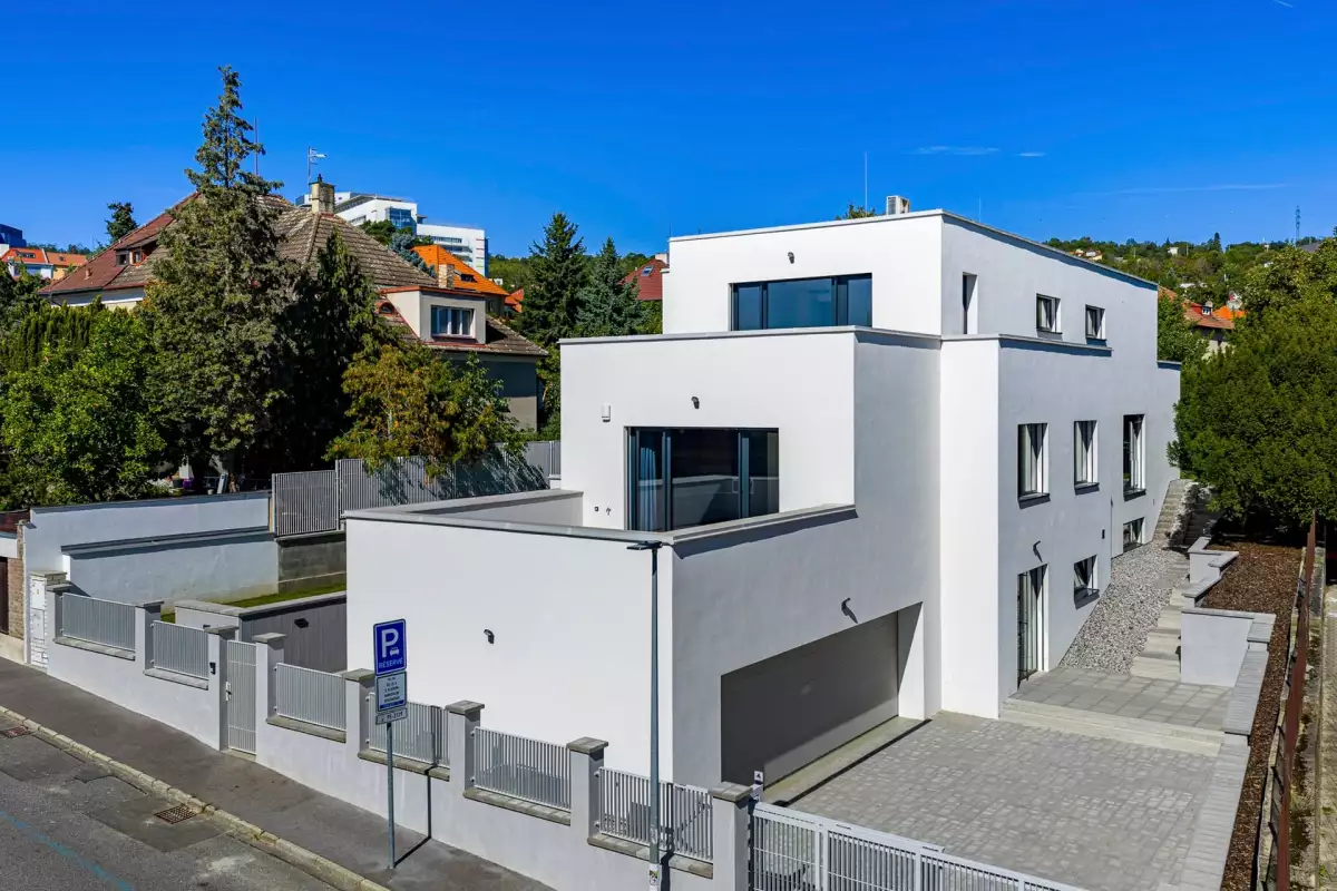 In the sought-after and quiet residential district of Prague 5 – Motol, part of Homolka, we are offering for sale a modern villa with a layout of 6+kt and a separate residential unit of 3+kt, set on a sloping plot of 972 sqm.