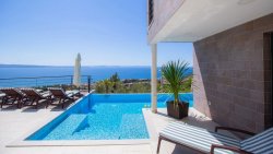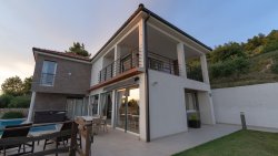 We offer for sale two exclusive holiday villas located in close proximity to the sea and boasting panoramic views of the Mediterranean Sea. Both properties are south-facing and surrounded by greenery, ensuring plenty of privacy and a pleasant microclimate. They feature clean lines, modern architectural style, and a well-thought-out layout.