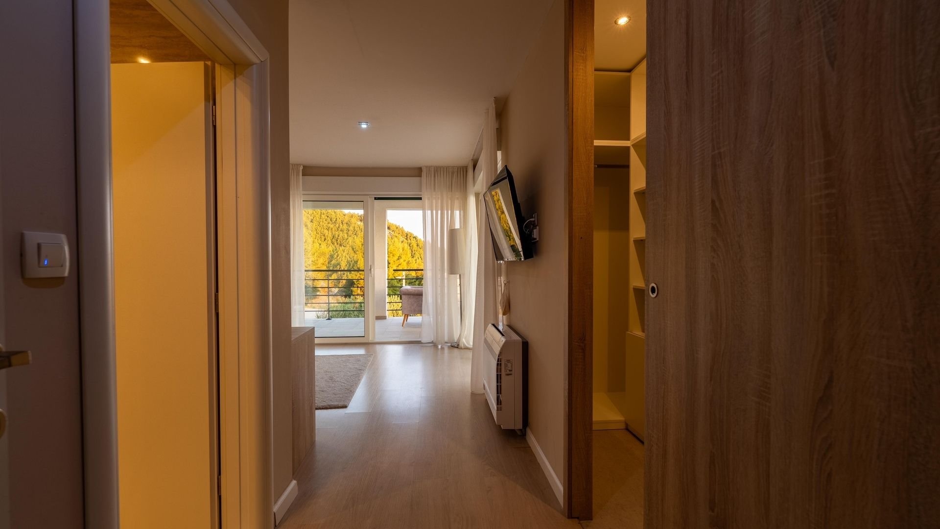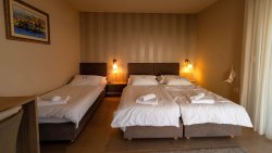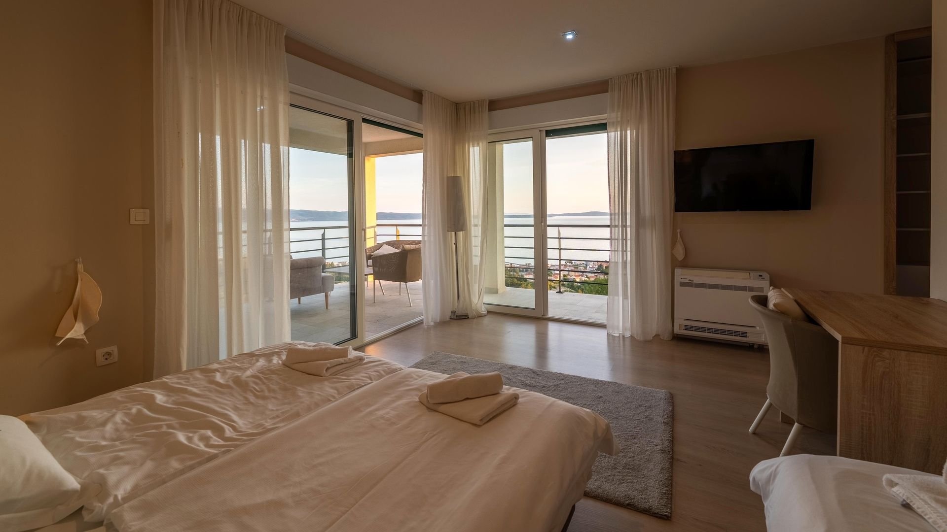 On the first floor (apartment no. 2) there are two more elegant bedrooms, also with bathrooms, a kitchen and a living room with access to a spacious terrace, which offers a pleasant place to sit and enjoy the view.