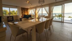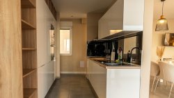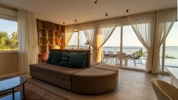 On the ground floor (apartment no. 1) there is a modern kitchen and living room with direct access to the terrace, which leads to the pool with sea views. There are also two bedrooms and two bathrooms.
