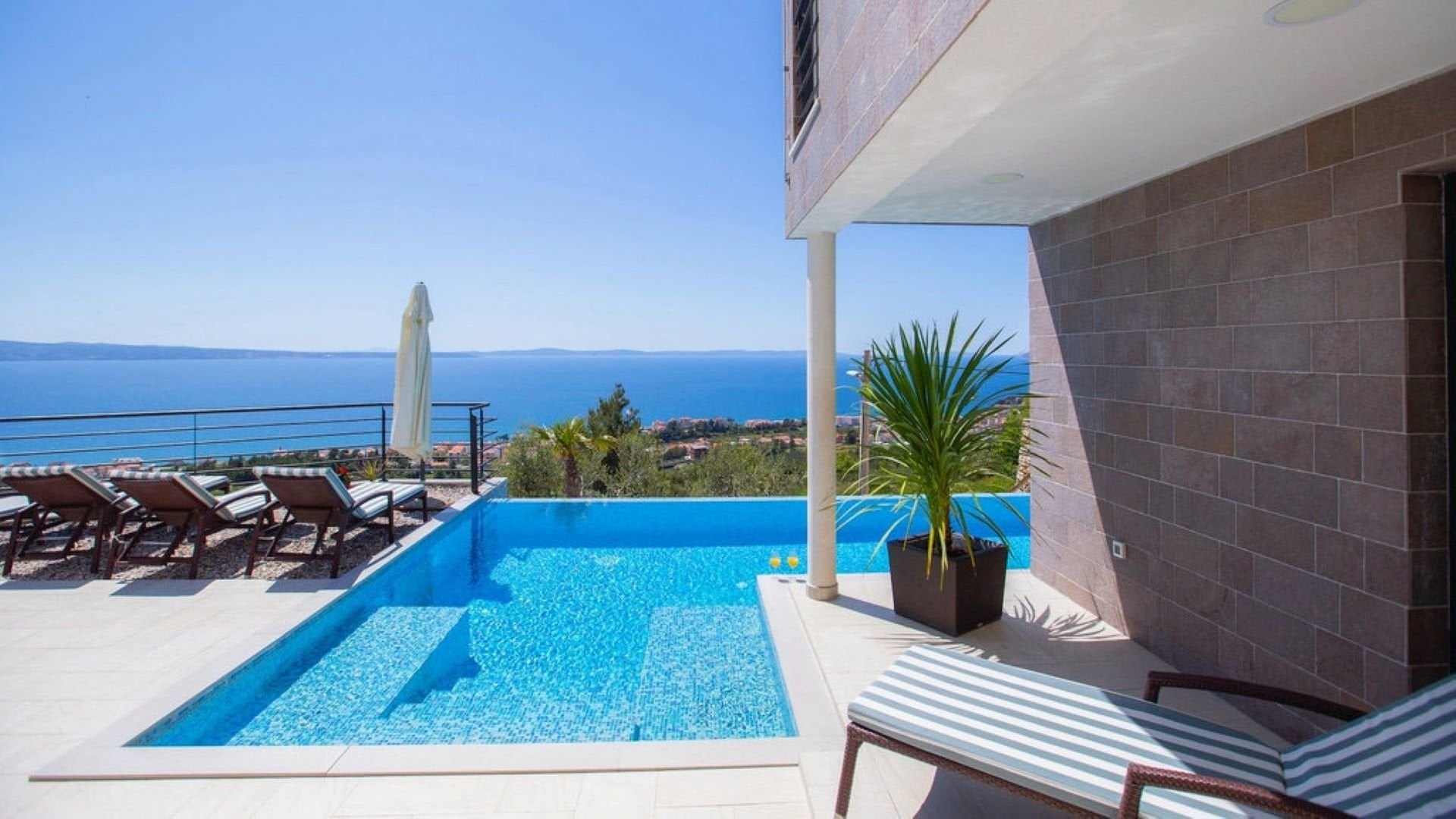 The nearest larger city, Split, is only 9 km away, and Split Airport is 26 km away. UNESCO-protected towns are also nearby, including the historic center of Split with Diocletian's Palace.