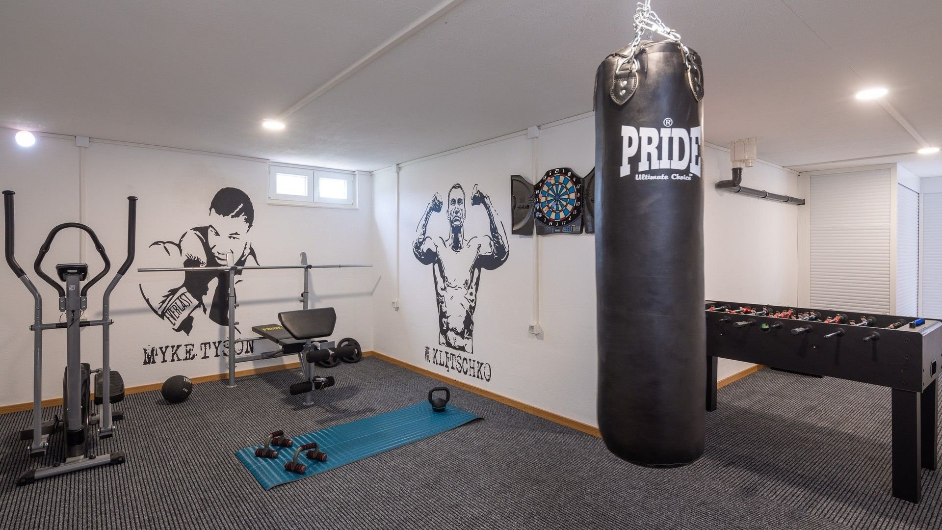 The villa is spread over two floors and a basement, where there is a small home gym, a games room, and a utility room with pool technology, which contributes to the comfort and functionality of the house.