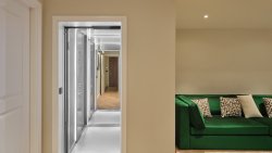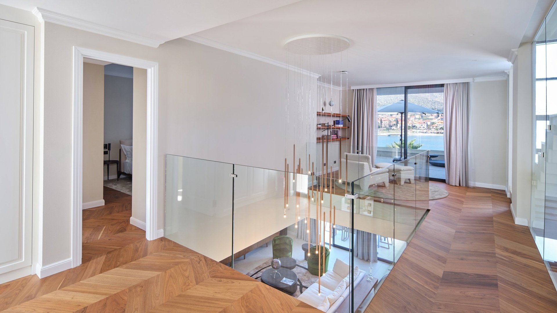 Only premium materials and technologies were used in the construction, including Schüco panoramic windows and doors, an OTIS elevator, Atlas porcelain tiles, Scheucher wooden floors, HansGrohe bathroom fixtures, Bosch kitchen appliances, and natural travertine.