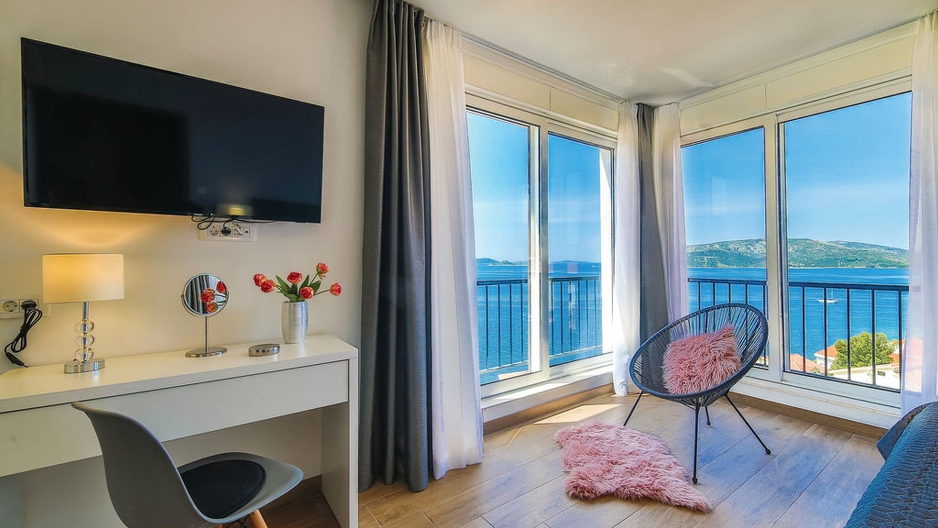 This exceptional villa is located just 80 metres from the sea coast and only 4 kilometres as the crow flies from the historic UNESCO World Heritage Site of Trogir. Split Airport is just 9 kilometres away, ensuring easy accessibility for international clients. The island of Ciovo is a popular destination for its harmony of peaceful surroundings and excellent infrastructure. Thanks to its strategic location, high standard and the possibility of year-round use, the villa represents an ideal investment opportunity.