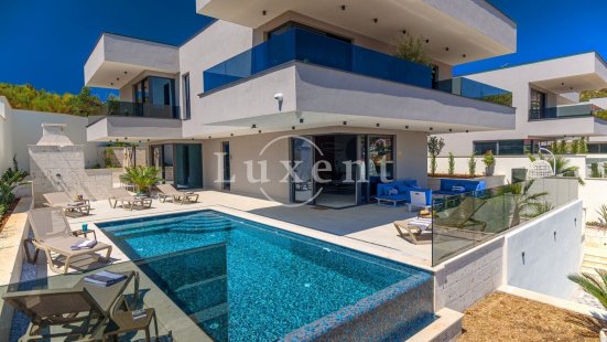 We offer for sale a brand new, elegantly furnished villa with a high standard of equipment, located just 150 meters from the sea and beautiful beaches, in a quiet fishing village near the historic UNESCO-listed town of Trogir.
