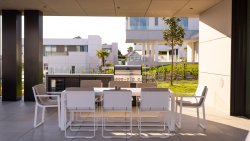 The villa has a total living area of 218 m² and is set on a private plot of 905 m², offering two large terraces with a total area of 237 m². The architectural design is the work of renowned studio Carlos Lamas and Interiorisimo, who paid attention to maximum functionality, aesthetics, and the connection between the interior and exterior.