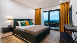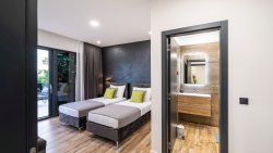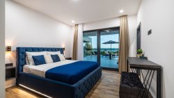 The second floor of the villa is dedicated to three luxurious bedrooms, each with its own bathroom and a balcony offering magnificent sea views. The villa is equipped with a modern heating and cooling system, including a heat pump and underfloor heating, ensuring optimal comfort throughout the year.