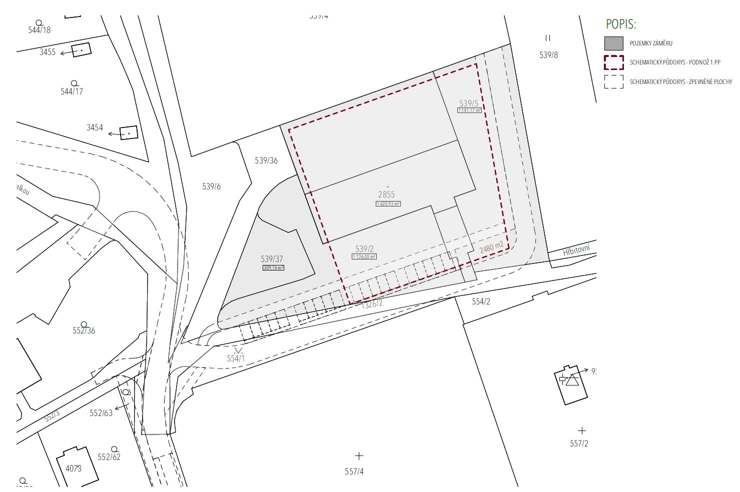 The project envisages 63 residential units ranging from 1+kk to spacious 5+kk with a total living area of 3,970 m². Each apartment is designed with an emphasis on comfort and quality of living – they include loggias, balconies or terraces with an average area of 10 m². Garage parking is provided on the first underground floor, with additional parking spaces available within the complex. The varied shape of the buildings and their sensitive height arrangement respect the scale of the surrounding buildings and fit naturally into the existing urban structure. The land is fully connected to utilities, including electricity, water and sewerage.