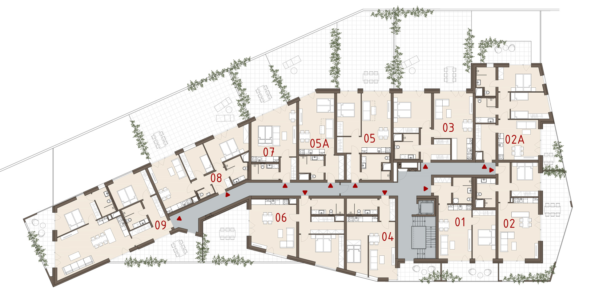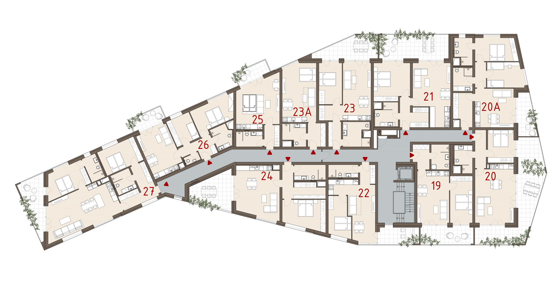 | SB-15 | 2 + kitchenette | 2nd floor | 65 m2 | 70 m2 | No / 17 m2 / No | No | Reserved | Detail |