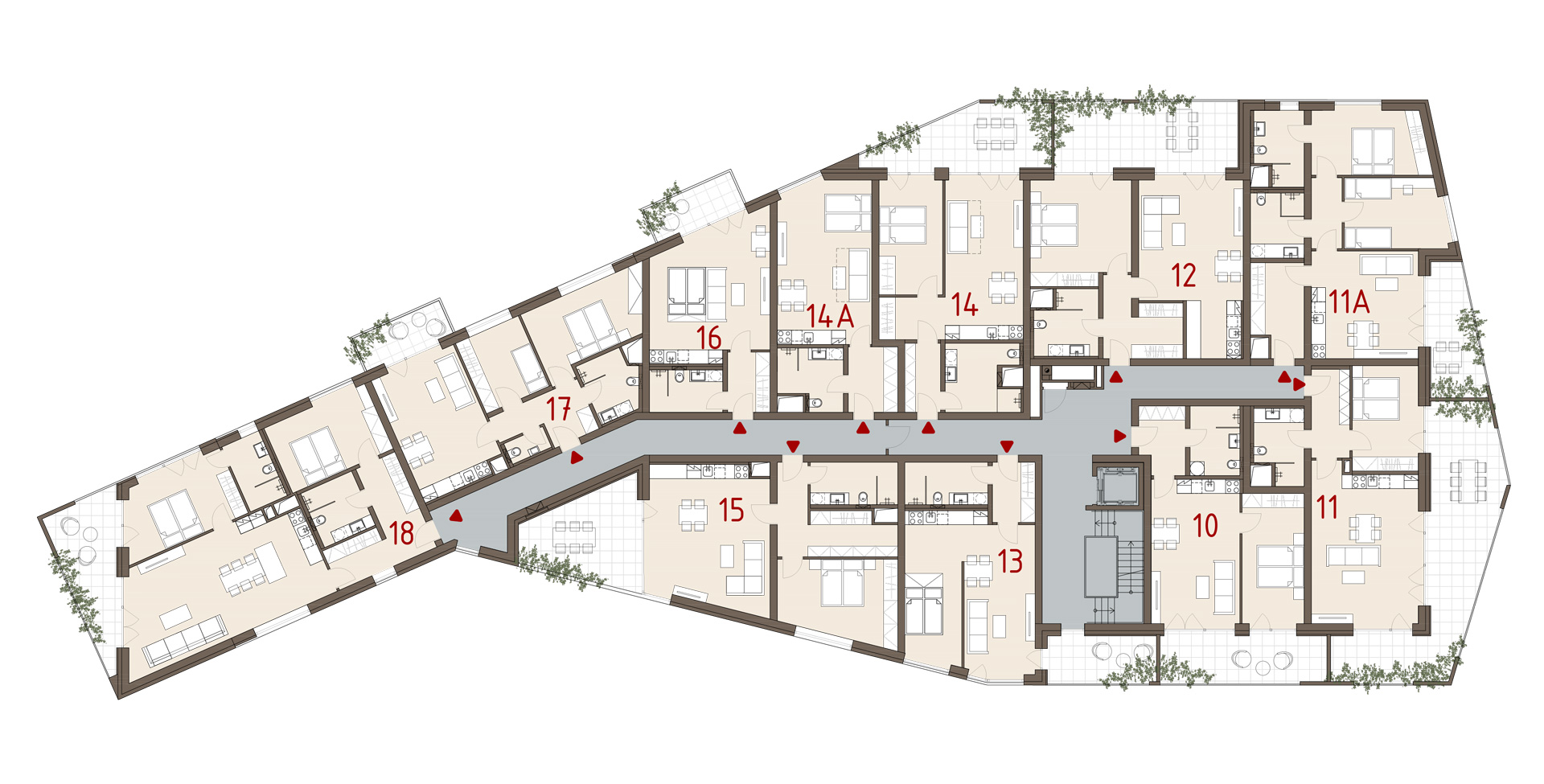 | SB-11A | 3 + kitchenette | 2nd floor | 71 m2 | 78 m2 | No / 11 m2 / No | No | 9 915 000 CZK | Detail |