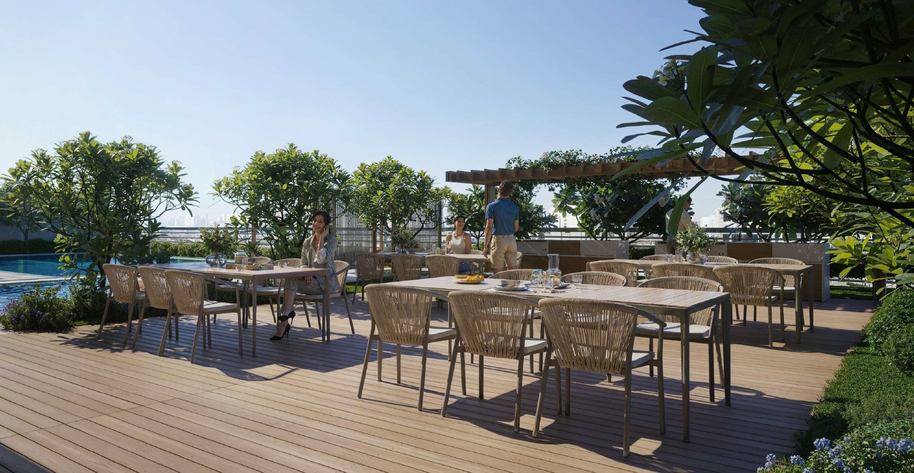 Projekt nabízí řadu benefitů, které výrazně zvyšují komfort a atraktivitu bydlení: střešní infinity bazén s panoramatickým výhledem, plně vybavené moderní fitness centrum s kardio a silovou zónou, relaxační zahrady a zelené odpočinkové zóny, multifunkční lounge prostory a dětské herní zóny a bezpečné hřiště pro nejmenší.