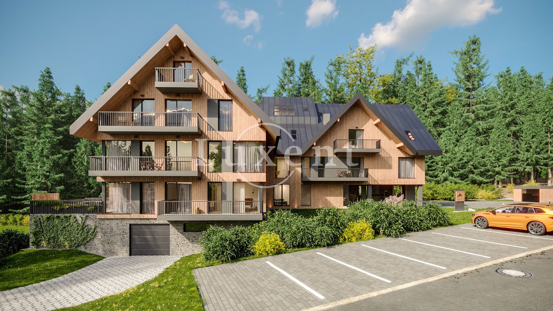 Harrachov Peaks je luxusní projekt vystavěný z kvalitních přírodních materiálů s wellness se saunou a vířivkou a plně vybaveným fitness. Představuje pouze 16 moderních apartmánů a nabízí tak komorní atmosféru v domě pro jejich majitele. Svým konceptem uspokojí zájemce jako o druhé bydlení v Krkonoších, tak investory se záměrem zajistit své finance nebo praktikovat výnosové krátkodobé pronájmy. Součástí nabídky je i správa apartmánů včetně pronájmů. Projekt HARRACHOV PEAKS nabízí vysoký standard vybavení – dubové podlahy, dřevěné terasy, velkoformátové obklady v koupelnách a na chodbách a další. Vytápění probíhá tepelnými čerpadly a je rozvedeno podlahovým topným systémem. V bytě je rekuperace. Energetická třída je velmi úspornou B.