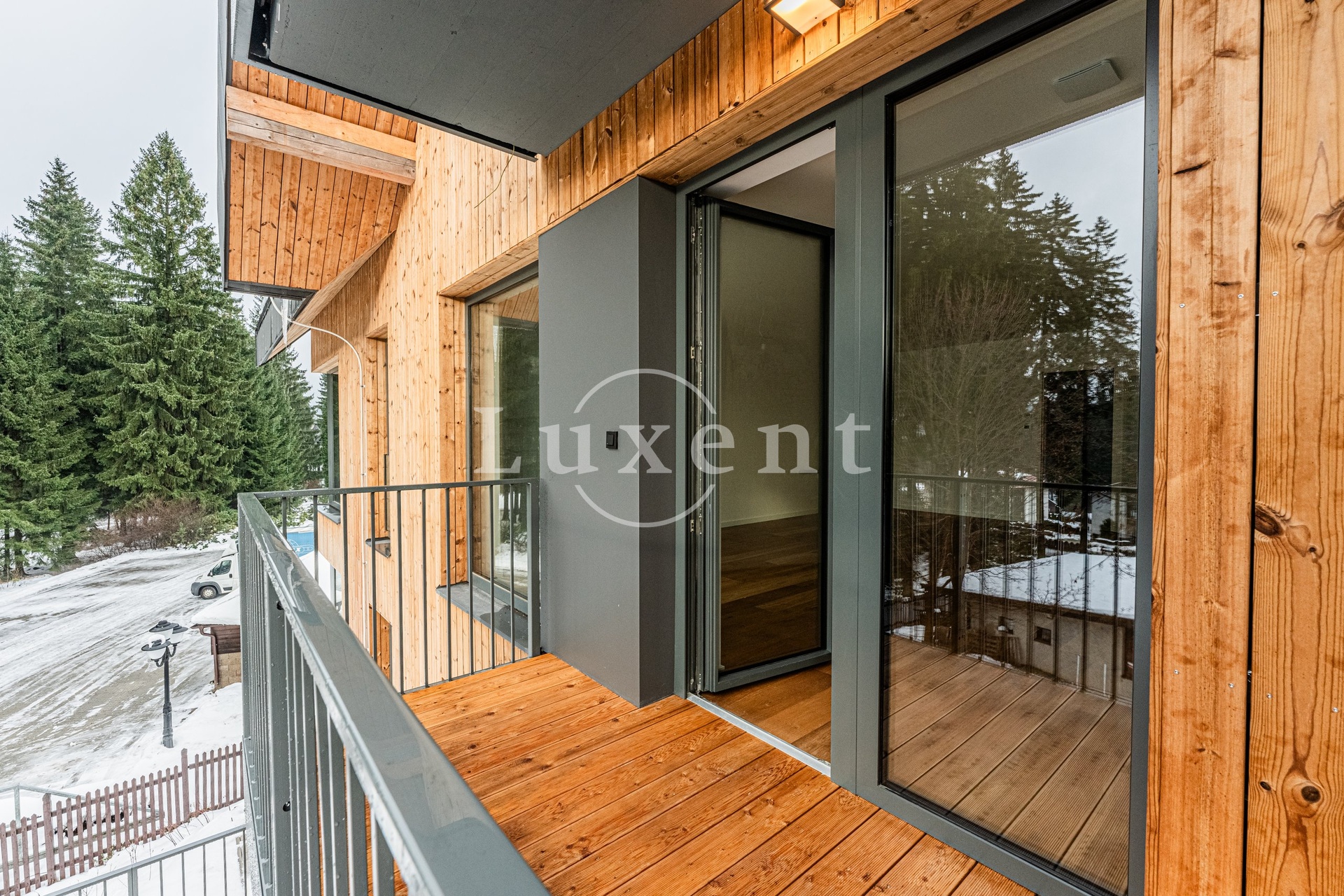Nabízíme k prodeji apartmán o dispozici 1+kk, obytné ploše 52,2 m² a podlahové ploše 54,6 m² s balkonem 4,5 m², který se nachází ve 2. nadzemním podlaží nově vznikajícího projektu HARRACHOV PEAKS. V komorním projektu je k dispozici celkem 16 stylových, útulných apartmánů o velikostech od 1+kk až po mezonety 4+kk s výhledem na vrcholky okolních hor, každý s terasou nebo balkonem. Tento nový apartmánový dům se nachází na horách přímo v lyžařském a rekreačním středisku – v oblíbené krkonošské lokalitě města Harrachov.