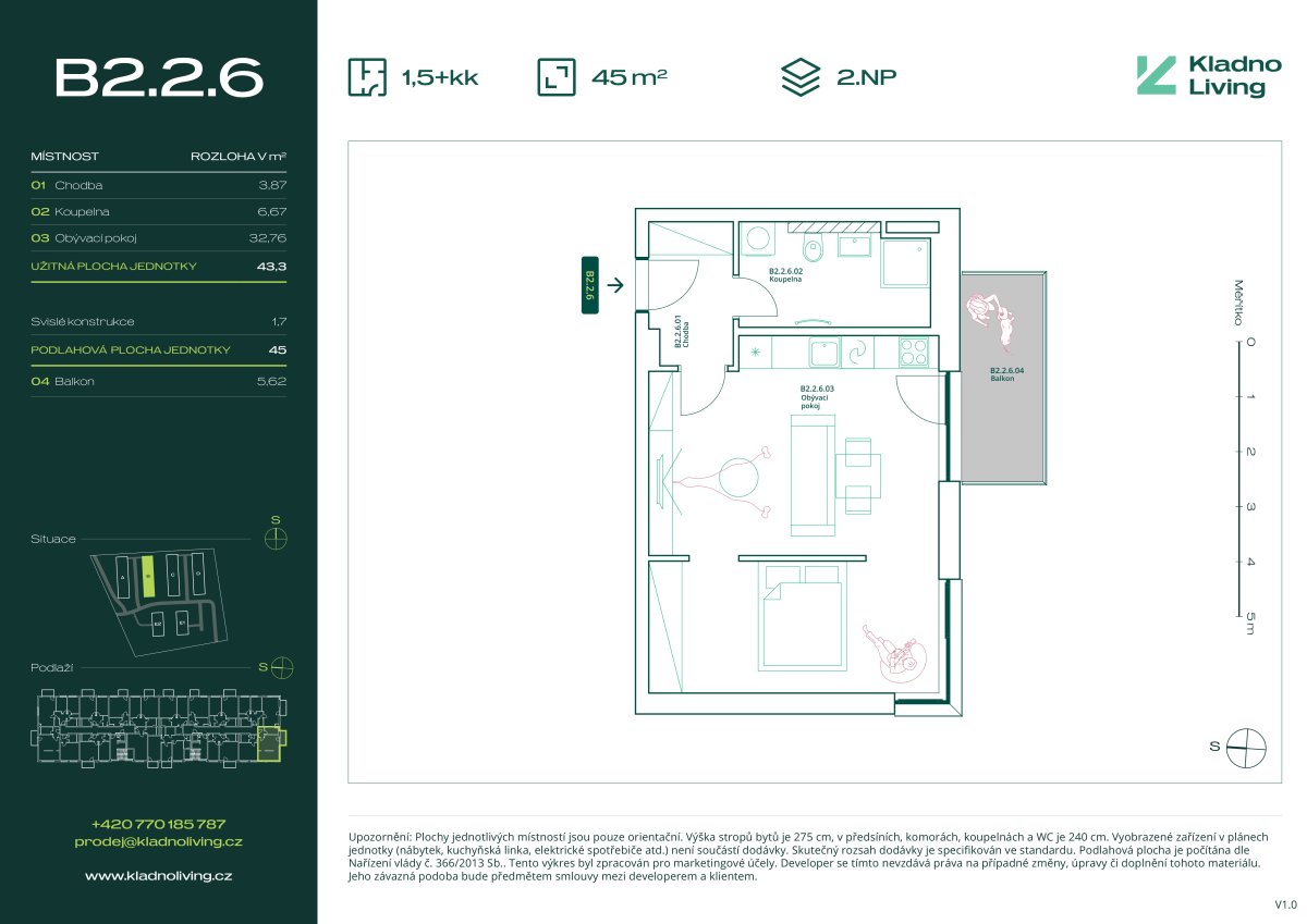 Nabízíme ke koupi moderní byt 1+kk o podlahové ploše 45 m² s balkonem 5,6 m² v rezidenčním projektu Kladno Living, který vzniká v jedné z nejatraktivnějších lokalit města Kladno – Kročehlavy. Tento nový developerský projekt představuje jedinečnou příležitost pro ty, kteří hledají nové byty v Kladně nebo investici do nemovitosti s vysokým potenciálem zhodnocení.