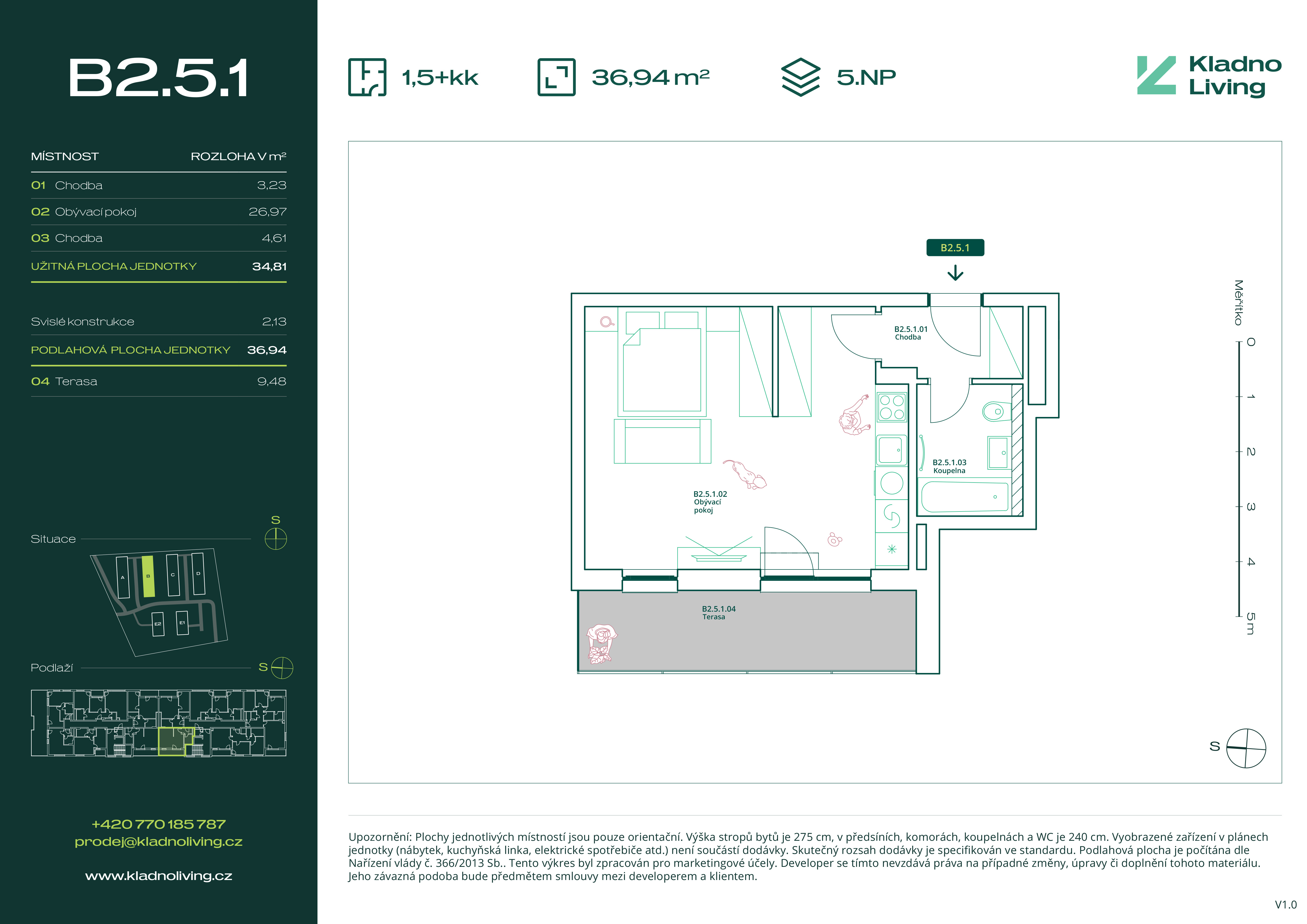 Nabízíme ke koupi moderní byt 1+kk o podlahové ploše 36,9 m² s terasou 9,5 m2 v rezidenčním projektu Kladno Living, který vzniká v jedné z nejatraktivnějších lokalit města Kladno – Kročehlavy. Tento nový developerský projekt představuje jedinečnou příležitost pro ty, kteří hledají nové byty v Kladně nebo investici do nemovitosti s vysokým potenciálem zhodnocení.