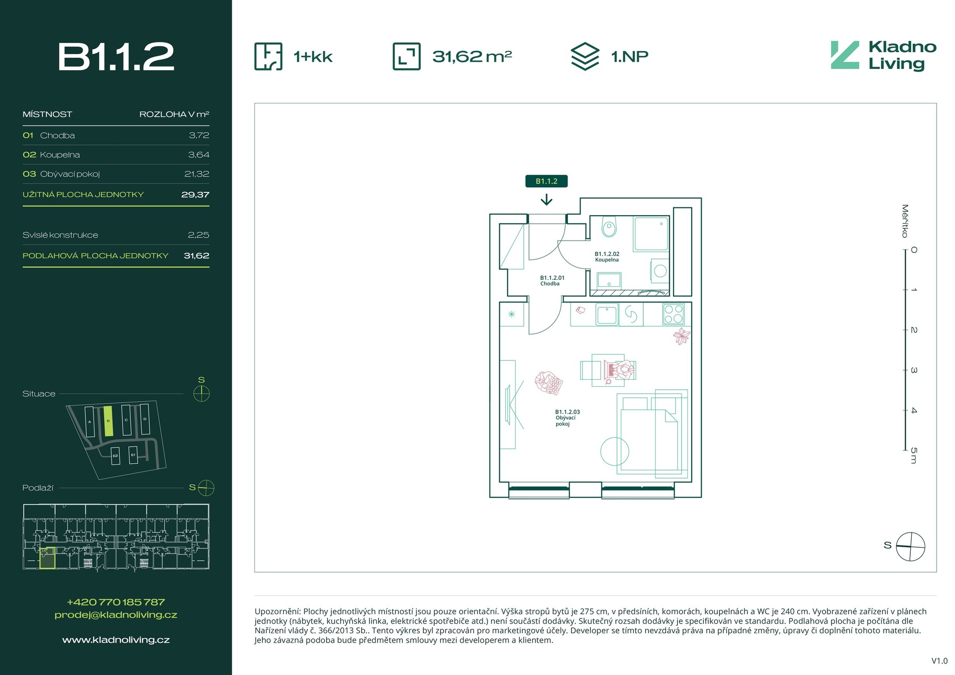 Nabízíme ke koupi moderní byt 1+kk o podlahové ploše 31,6 m² v rezidenčním projektu Kladno Living, který vzniká v jedné z nejatraktivnějších lokalit města Kladno – Kročehlavy. Tento nový developerský projekt představuje jedinečnou příležitost pro ty, kteří hledají nové byty v Kladně nebo investici do nemovitosti s vysokým potenciálem zhodnocení.