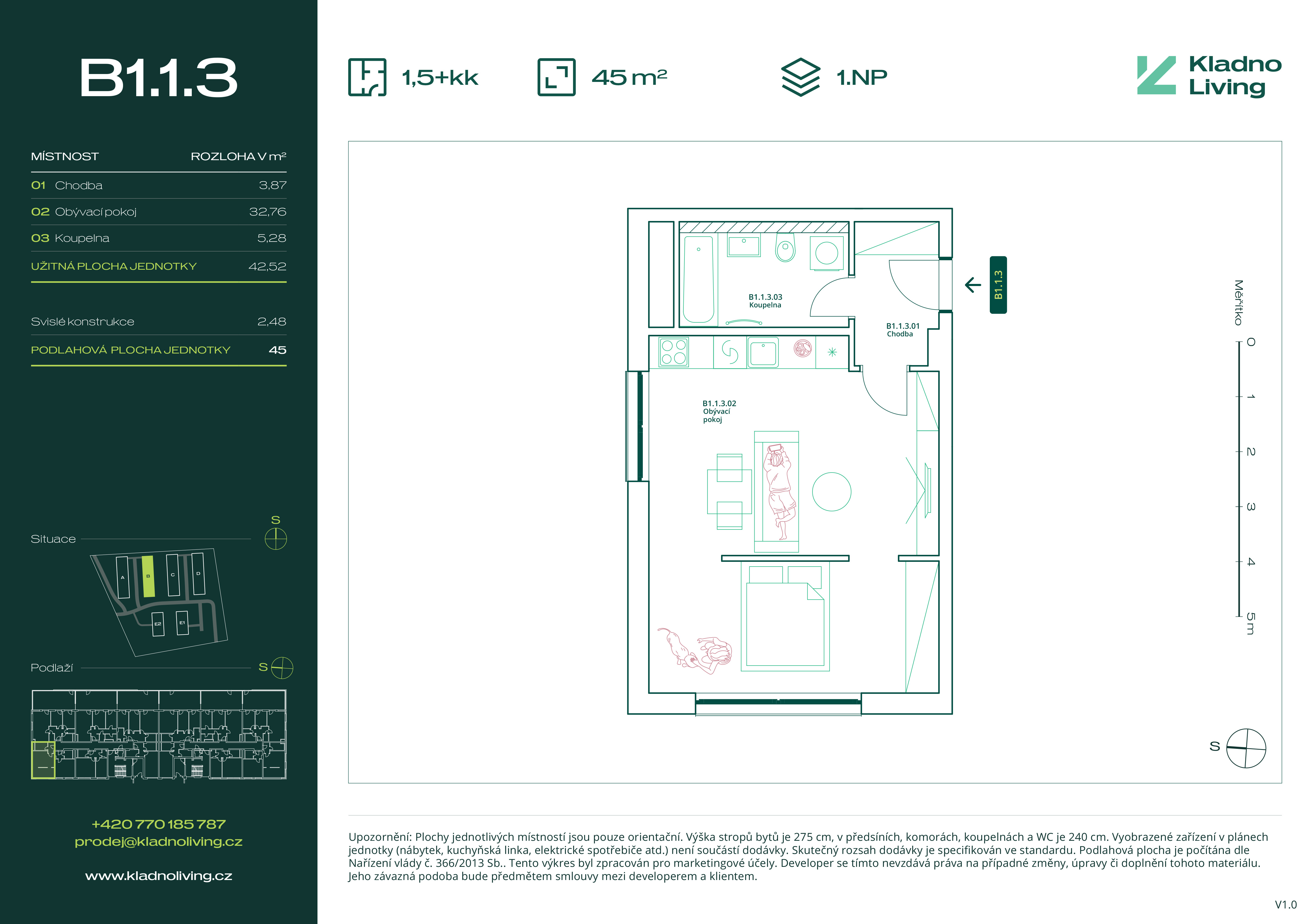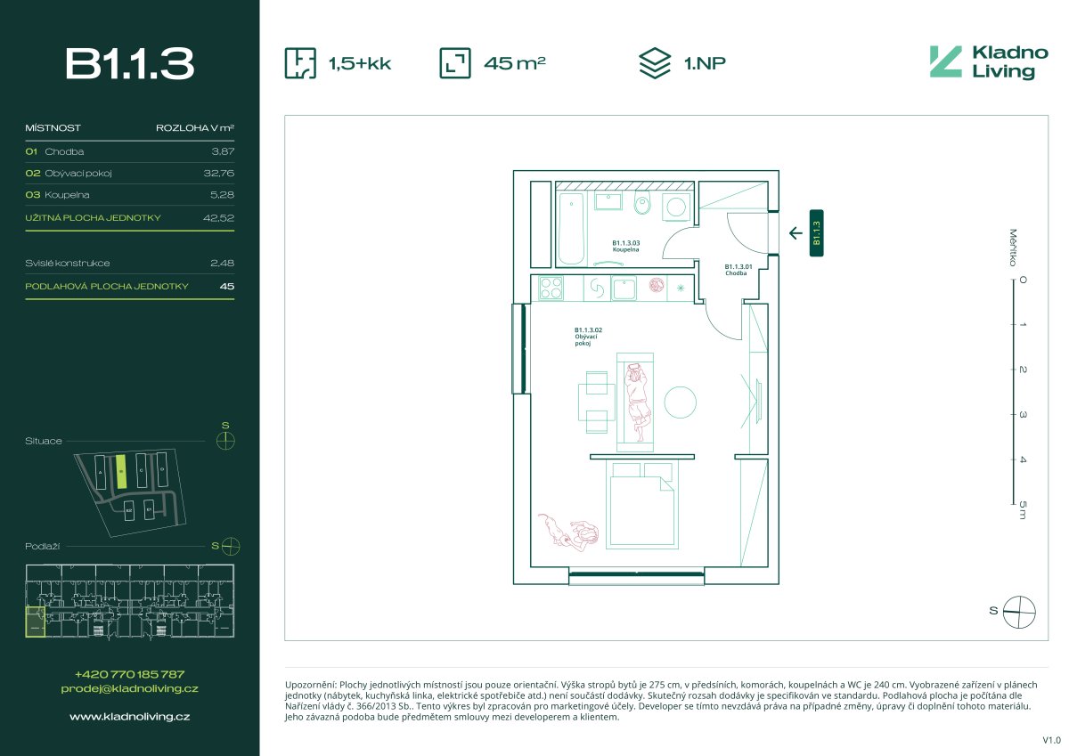 Nabízíme ke koupi moderní byt 1+kk o podlahové ploše 45 m² v rezidenčním projektu Kladno Living, který vzniká v jedné z nejatraktivnějších lokalit města Kladno – Kročehlavy. Tento nový developerský projekt představuje jedinečnou příležitost pro ty, kteří hledají nové byty v Kladně nebo investici do nemovitosti s vysokým potenciálem zhodnocení.