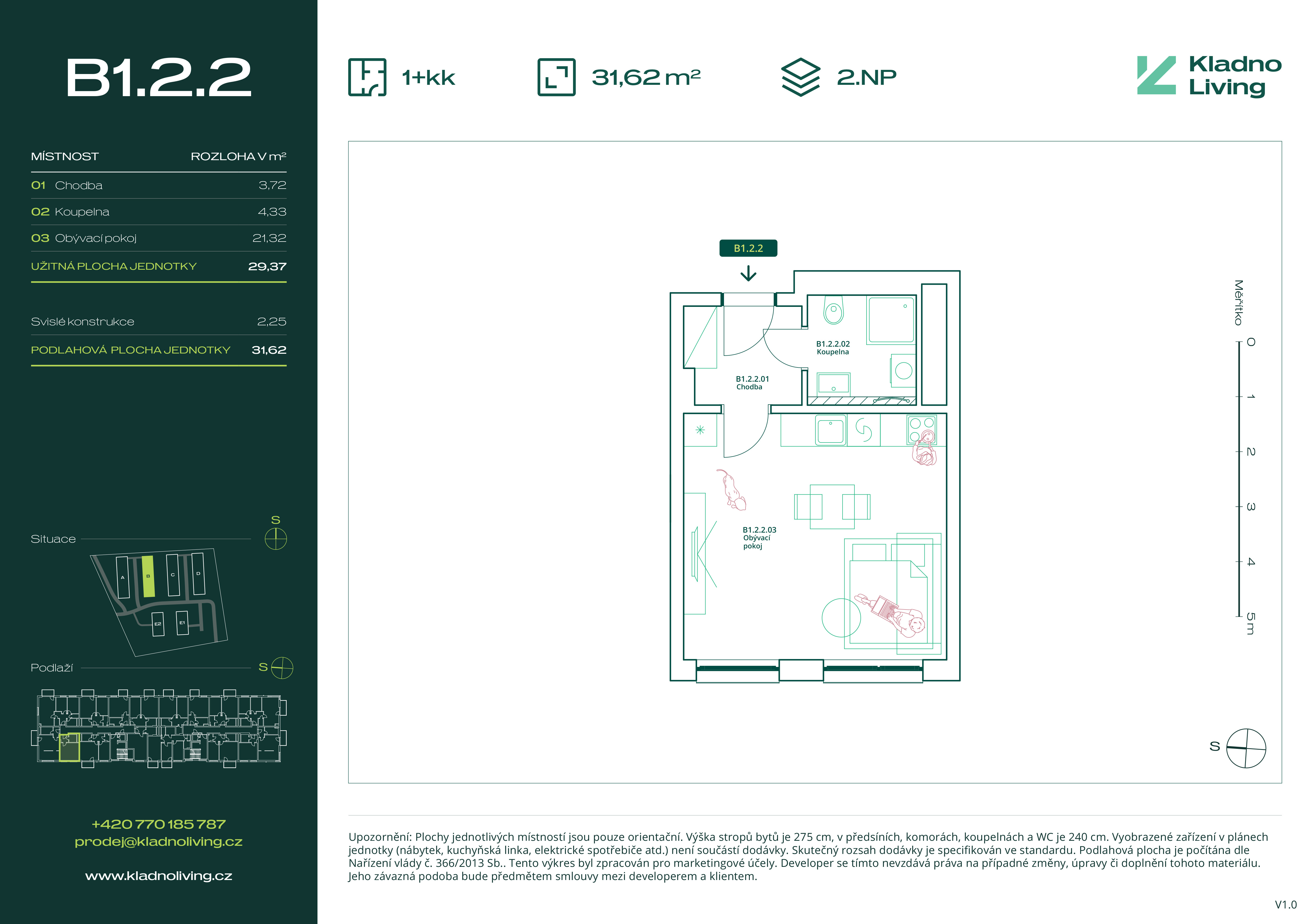 Nabízíme ke koupi moderní byt 1+kk o podlahové ploše 31,6 m² v rezidenčním projektu Kladno Living, který vzniká v jedné z nejatraktivnějších lokalit města Kladno – Kročehlavy. Tento nový developerský projekt představuje jedinečnou příležitost pro ty, kteří hledají nové byty v Kladně nebo investici do nemovitosti s vysokým potenciálem zhodnocení.