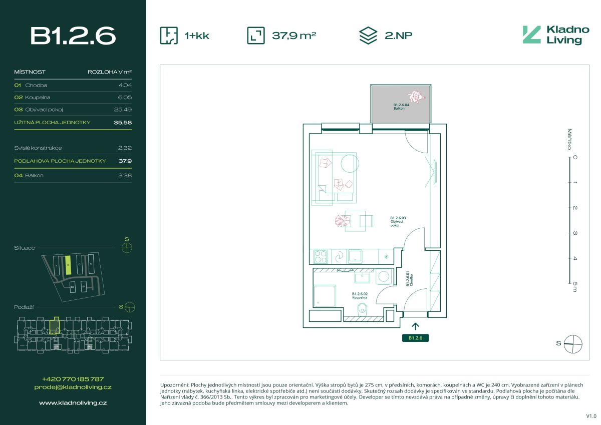 | KL-B126 | 1+kk | 1. patro | 36 m2 | 38 m2 | Ne / 3 m2 / Ne | Ne | 4 580 000 Kč | Detail |