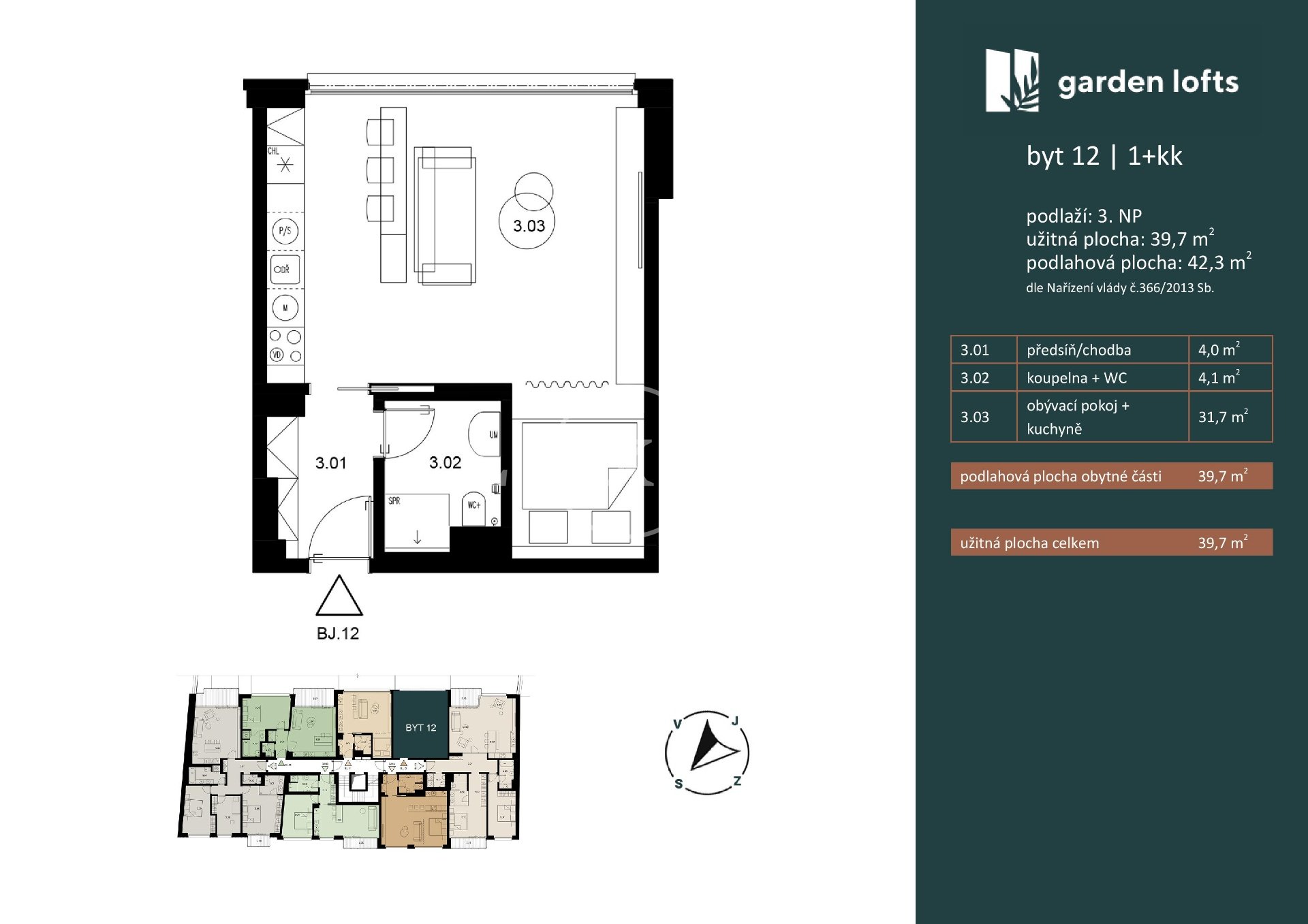 | GL-12 | 1+kk | 2. patro | 40 m2 | 40 m2 | Ne / Ne / Ne | Ne | Prodáno | Detail |