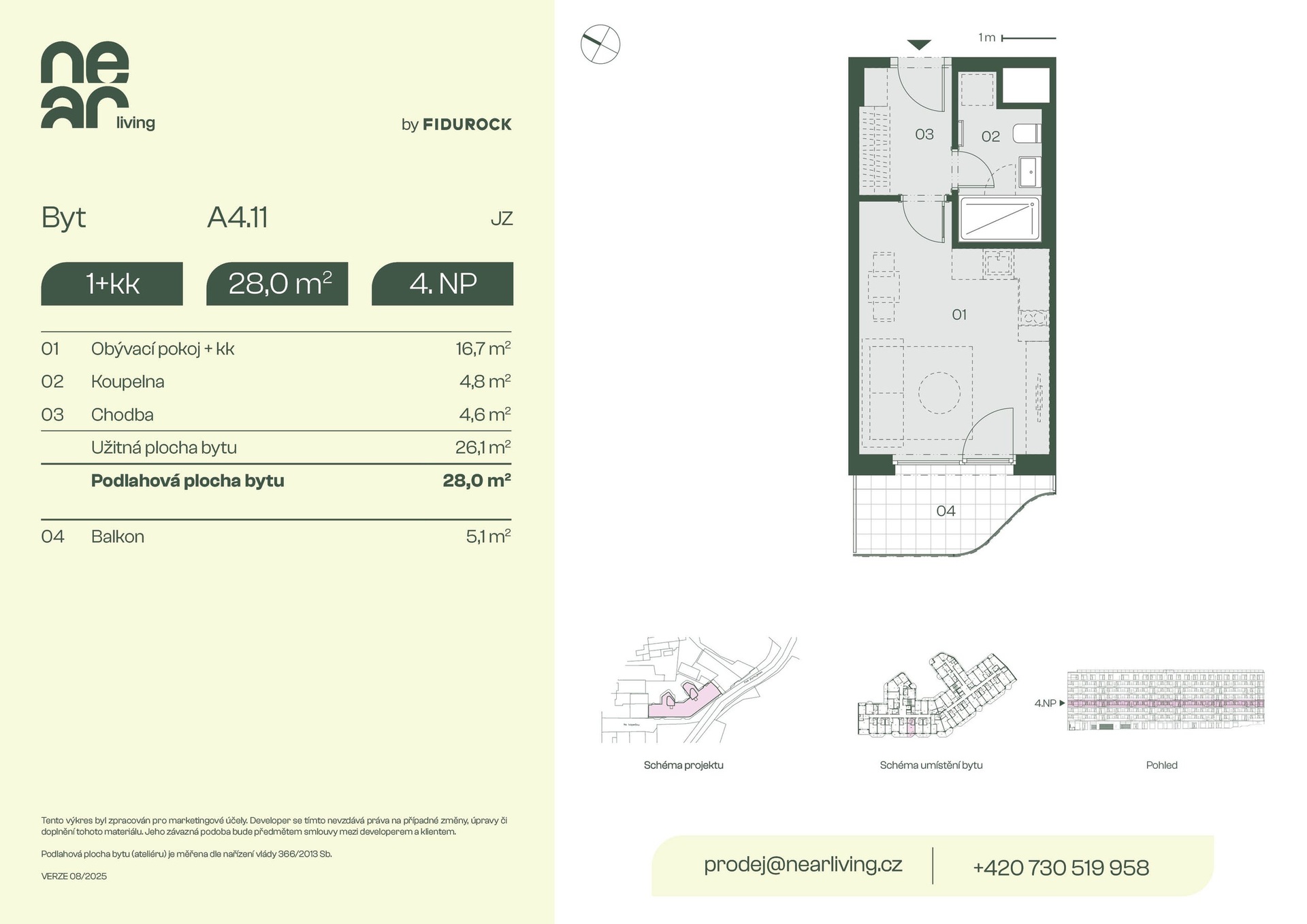 | NL-A411 | 1+kk | 3. patro | 26 m2 | 28 m2 | Ne / 5 m2 / Ne | Ne | Rezervováno | Detail |