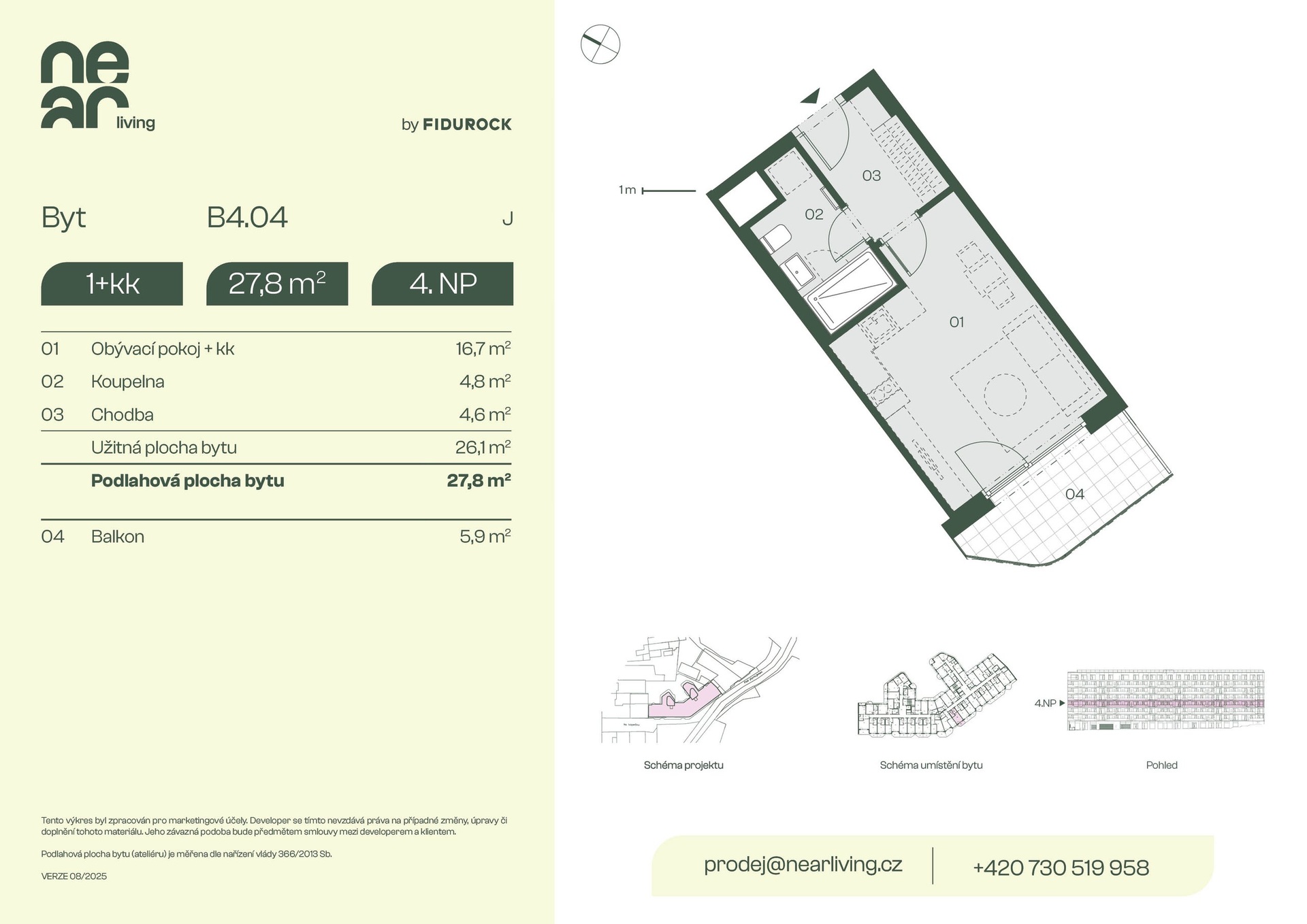 Nabízíme k prodeji byt 1+kk o podlahové ploše 27,8 m² s balkonem 5,9 m² v developerském projektu NEAR living v Praze 8, vznikajícím na pomezí Palmovky a Karlína.