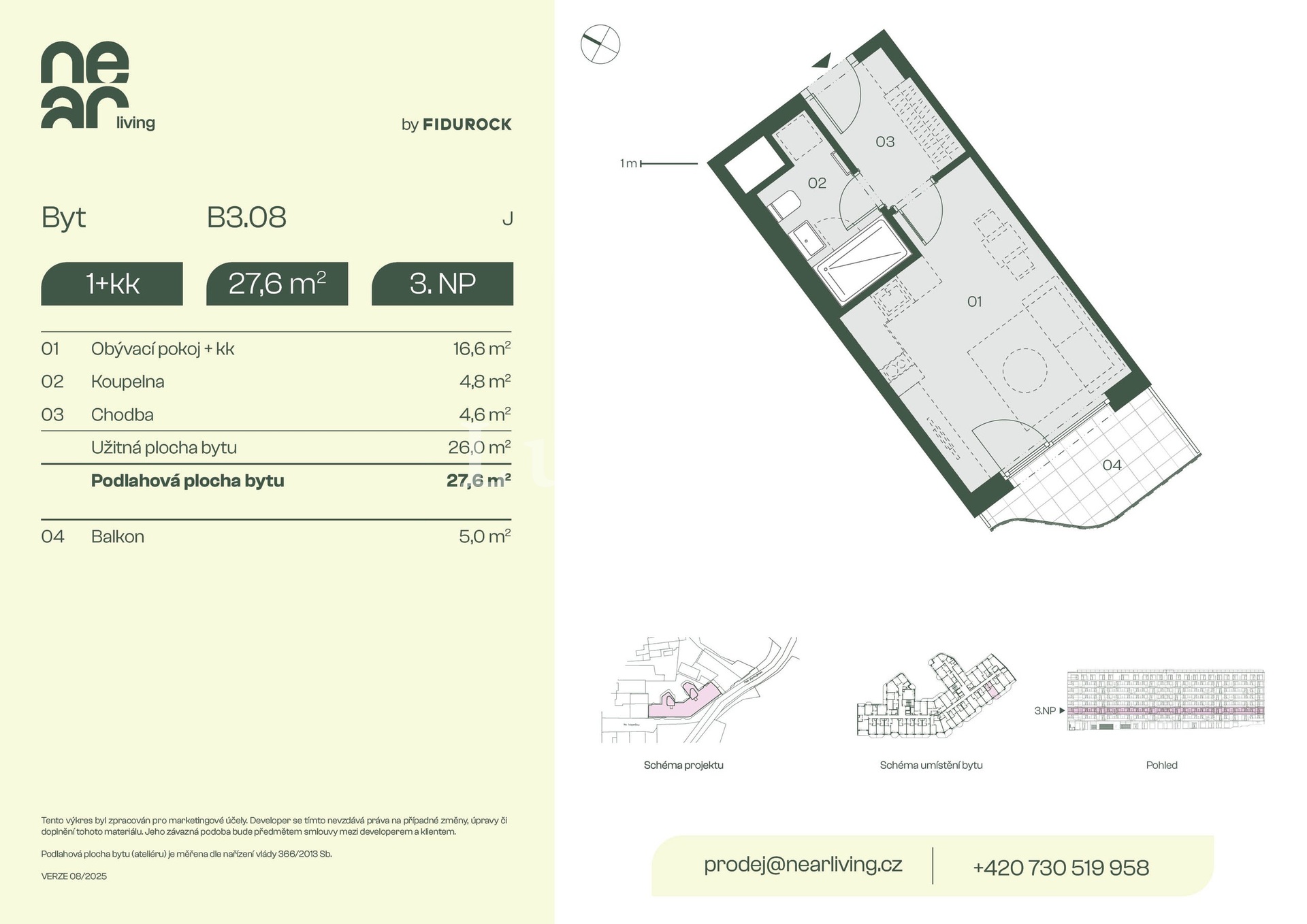 NL-B308 | 1+kk | 2. patro | 26 m2 | 28 m2 | Ne / 5 m2 / Ne | Ne | Rezervováno | Detail |