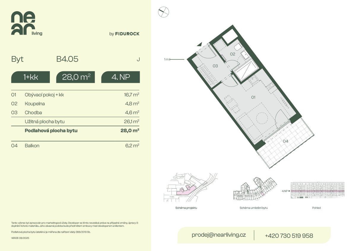 | NL-B308 | 1+kk | 2. patro | 26 m2 | 28 m2 | Ne / 5 m2 / Ne | Ne | Rezervováno | Detail |