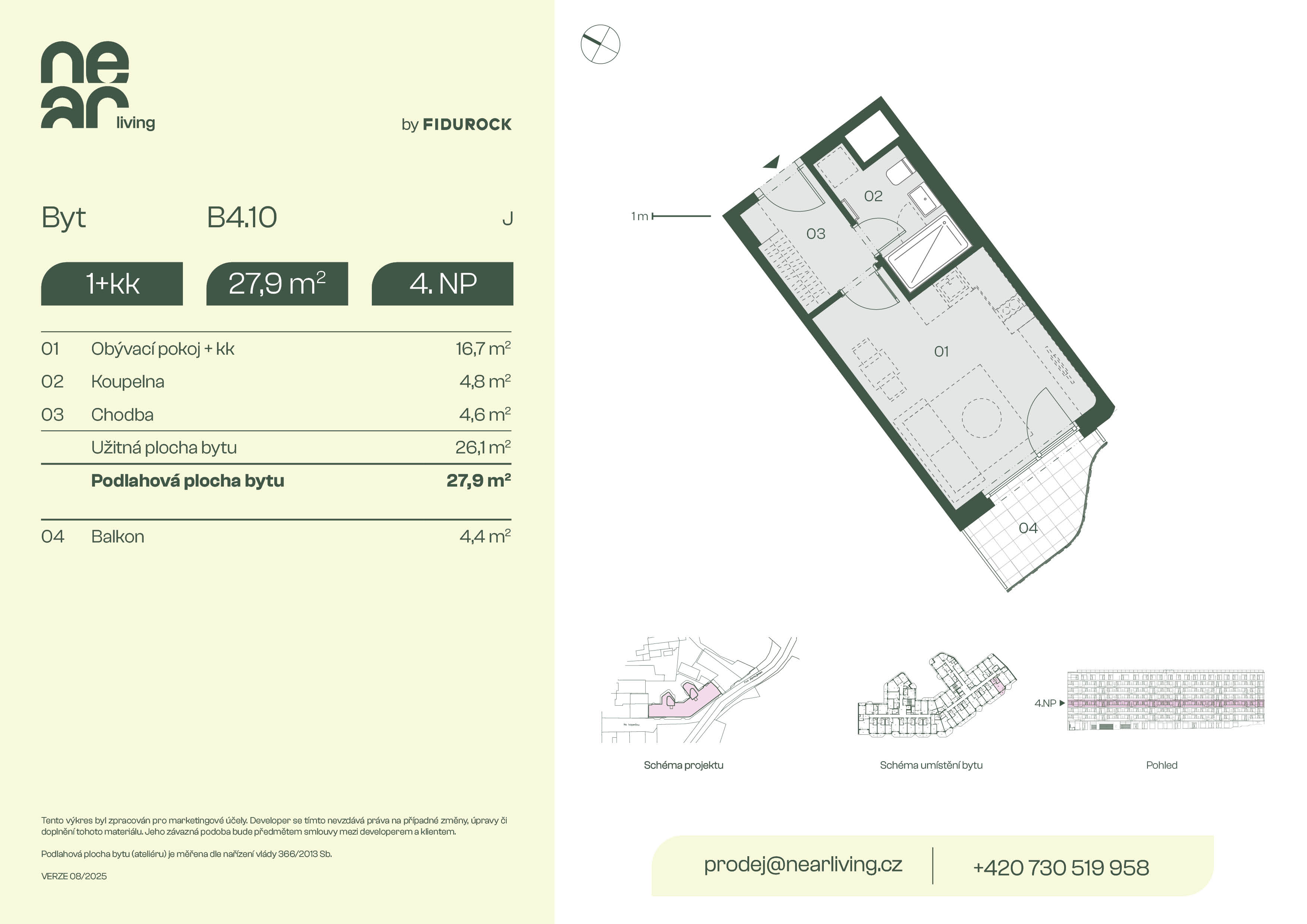Nabízíme k prodeji byt 1+kk o podlahové ploše 27,9 m² s balkonem 4,4 m² v developerském projektu NEAR living v Praze 8, vznikajícím na pomezí Palmovky a Karlína.