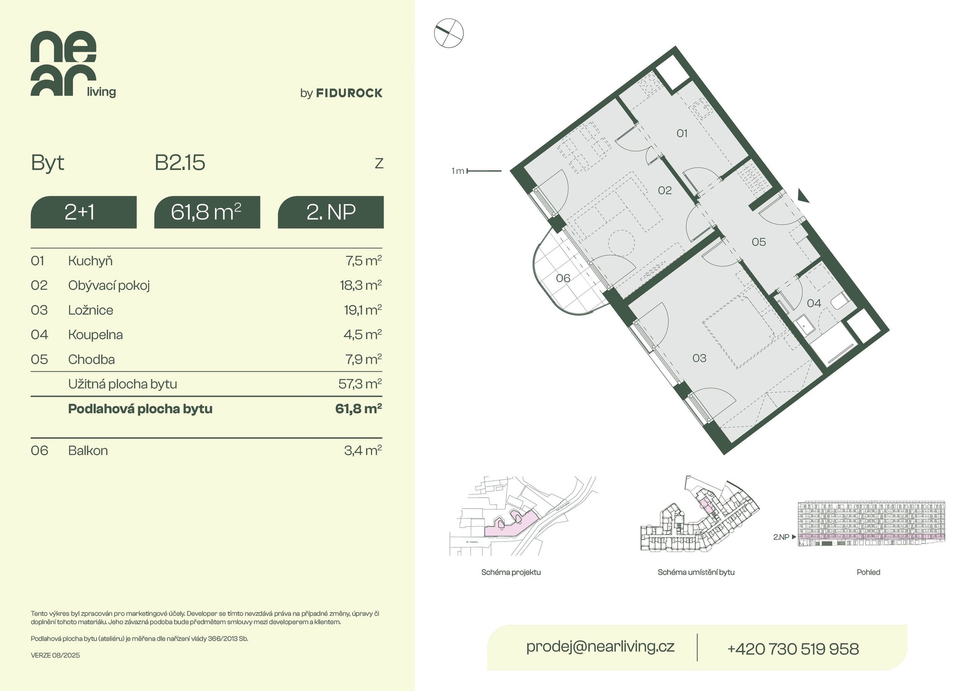 Nabízíme k prodeji byt 2+1 o podlahové ploše 61,8 m² s balkonem 3,4 m² v developerském projektu NEAR living v Praze 8, vznikajícím na pomezí Palmovky a Karlína.