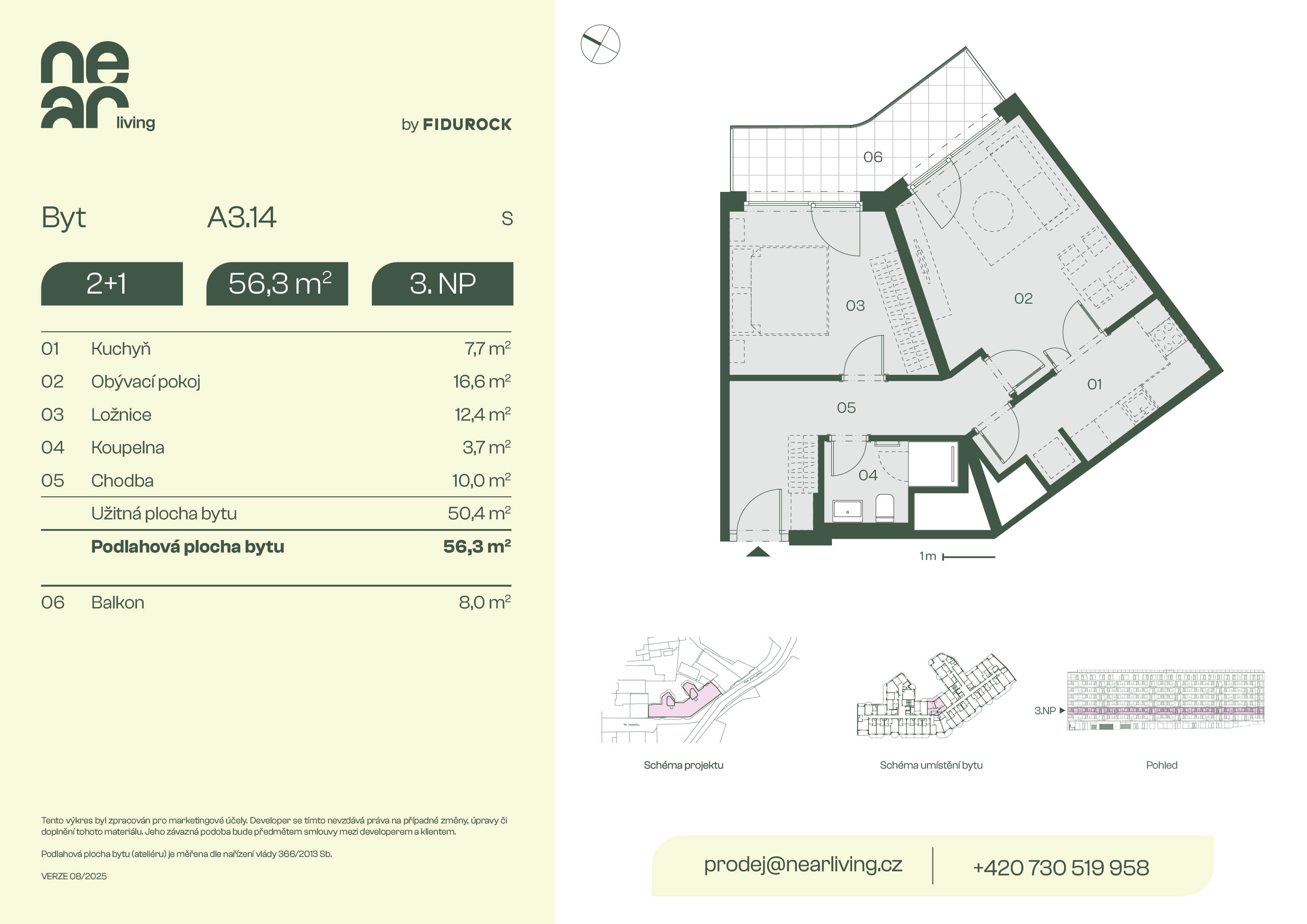 Nabízíme k prodeji byt 2+1 o podlahové ploše 56,3 m² s balkonem 8 m² v developerském projektu NEAR living v Praze 8, vznikajícím na pomezí Palmovky a Karlína.