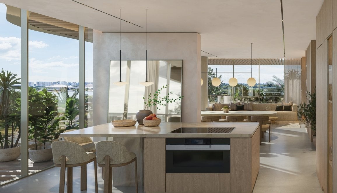 Nabízíme k prodeji apartmán v projektu Avida Residences na Dubai Islands – butikové rezidenci, která kombinuje moderní architekturu s wellness konceptem. Budova je navržena s důrazem na maximální propojení interiéru s exteriérem díky oknům od podlahy ke stropu, která zajišťují dostatek denního světla a výhledy na moře. Jsou zde použité velmi kvalitní materiály jako dřevo, kámen a kvalitní textilie které přispívají k harmonické atmosféře.