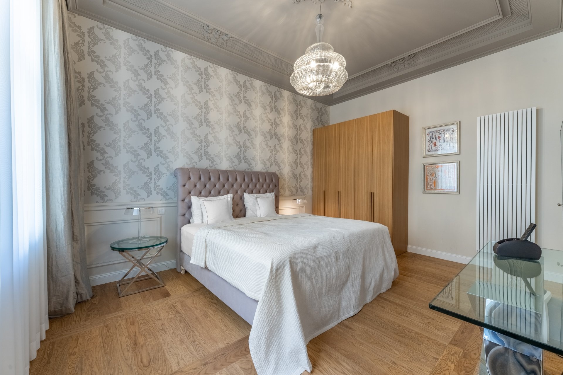 Nabízíme luxusně vybavený designový apartmán „Amethyst“ v nově zrekonstruovaném historickém domě Rubin Palace, v srdci Karlových Varů, ve Vřídelní ulici na lázeňské kolonádě. Jedná se o byt ve 3. patře tohoto atraktivního rezidenčního domu s výtahem. Dispozice 2+kk je rozložena na podlahové ploše 61,7 m2.