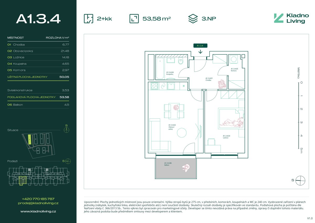 Nabízíme ke koupi moderní byt 2+kk o podlahové ploše 53,6 m² s balkonem 4,5 m² v rezidenčním projektu Kladno Living, který vzniká v jedné z nejatraktivnějších lokalit města Kladno – Kročehlavy. Tento nový developerský projekt představuje jedinečnou příležitost pro ty, kteří hledají nové byty v Kladně nebo investici do nemovitosti s vysokým potenciálem zhodnocení.