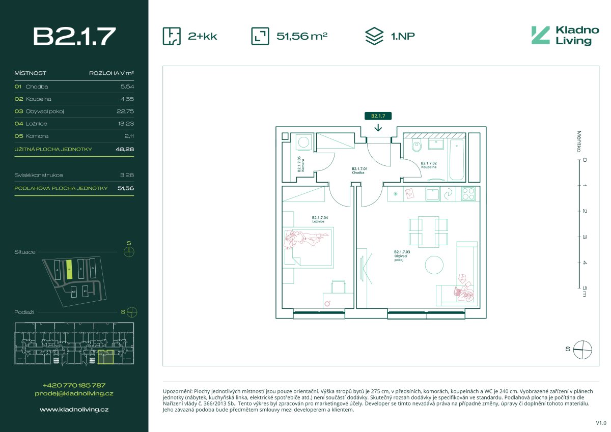 Nabízíme ke koupi moderní byt 2+kk o podlahové ploše 51,6 m² v rezidenčním projektu Kladno Living, který vzniká v jedné z nejatraktivnějších lokalit města Kladno – Kročehlavy. Tento nový developerský projekt představuje jedinečnou příležitost pro ty, kteří hledají nové byty v Kladně nebo investici do nemovitosti s vysokým potenciálem zhodnocení.