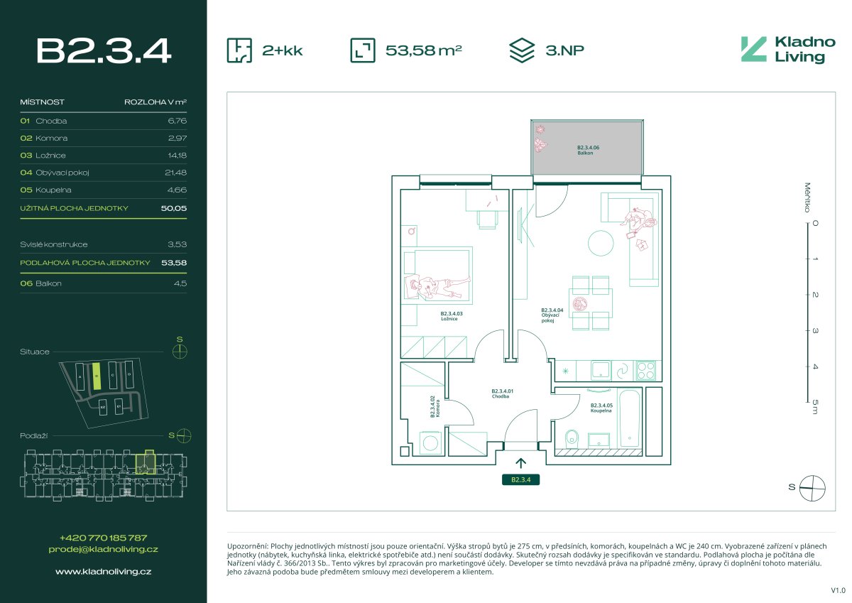 Nabízíme ke koupi moderní byt 2+kk o podlahové ploše 53,6 m² s balkonem 4,5 m² v rezidenčním projektu Kladno Living, který vzniká v jedné z nejatraktivnějších lokalit města Kladno – Kročehlavy. Tento nový developerský projekt představuje jedinečnou příležitost pro ty, kteří hledají nové byty v Kladně nebo investici do nemovitosti s vysokým potenciálem zhodnocení.