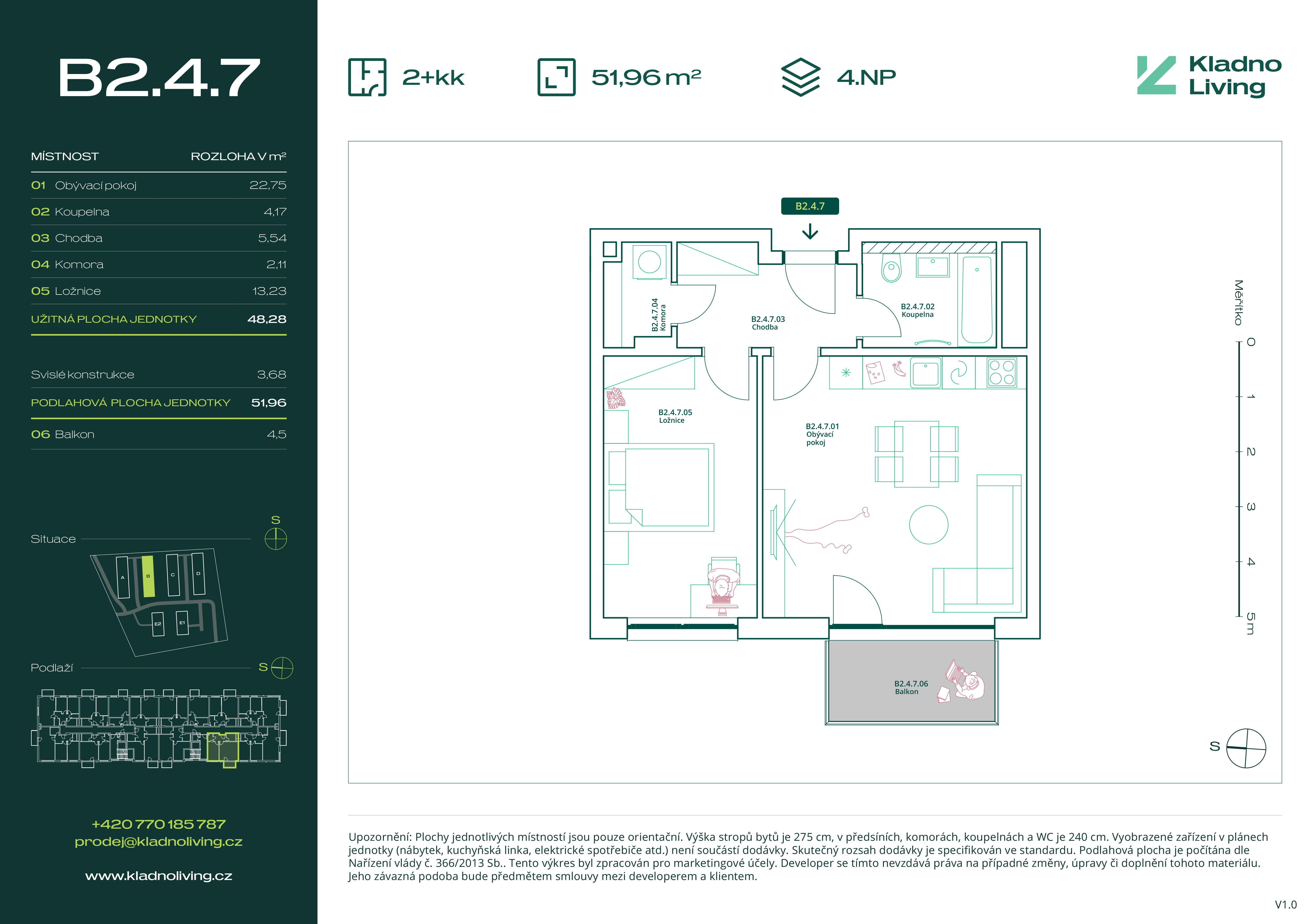 | KL-B247 | 2+kk | 3. patro | 48 m2 | 52 m2 | Ne / 5 m2 / Ne | Ne | 6 180 000 Kč | Detail |