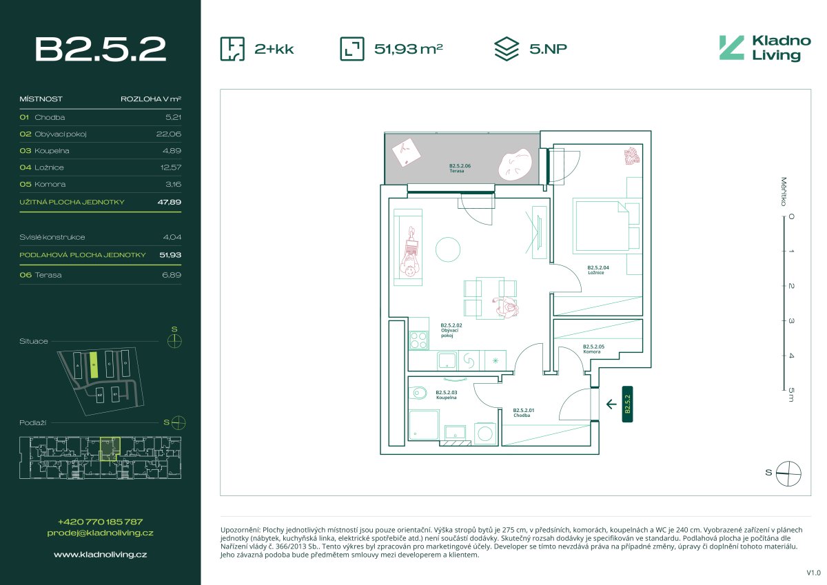 | KL-B247 | 2+kk | 3. patro | 48 m2 | 52 m2 | Ne / 5 m2 / Ne | Ne | 6 180 000 Kč | Detail |