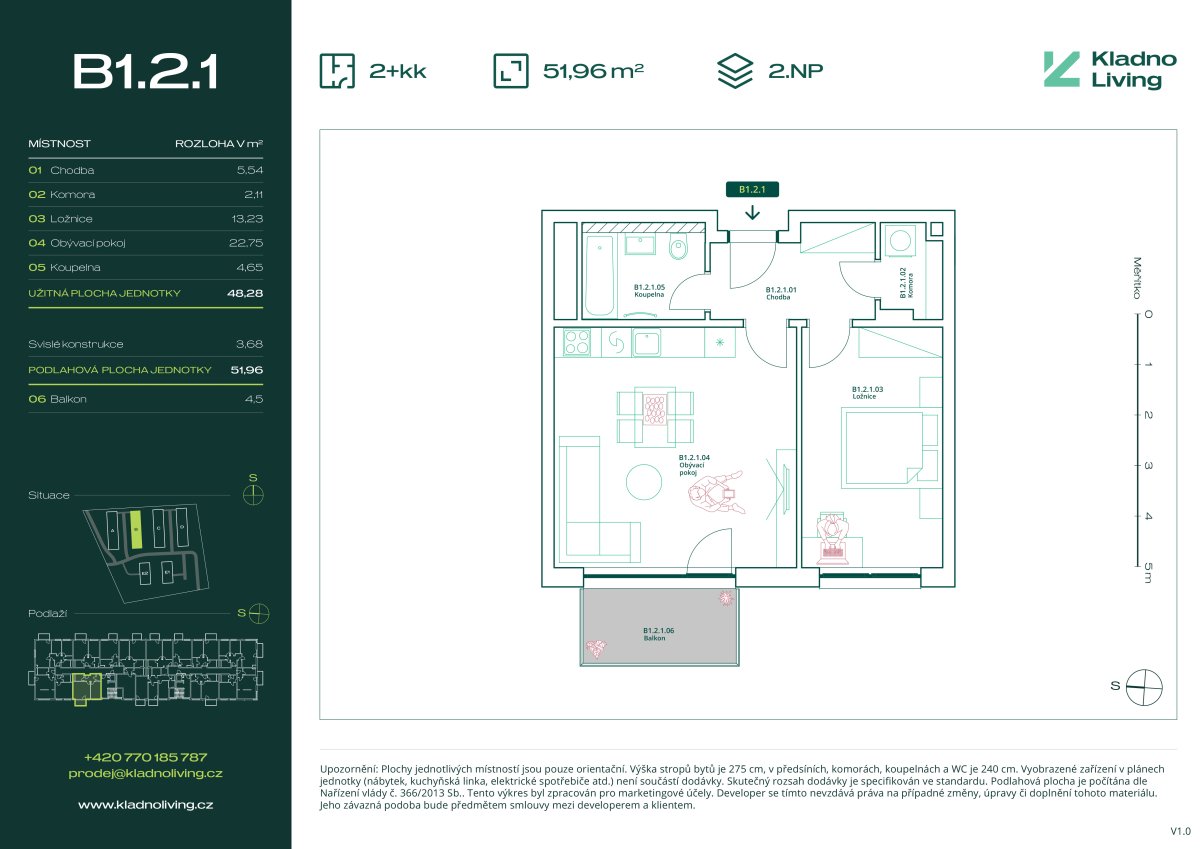 Nabízíme ke koupi moderní byt 2+kk o podlahové ploše 52 m² s balkonem 4,5 m² v rezidenčním projektu Kladno Living, který vzniká v jedné z nejatraktivnějších lokalit města Kladno – Kročehlavy. Tento nový developerský projekt představuje jedinečnou příležitost pro ty, kteří hledají nové byty v Kladně nebo investici do nemovitosti s vysokým potenciálem zhodnocení.