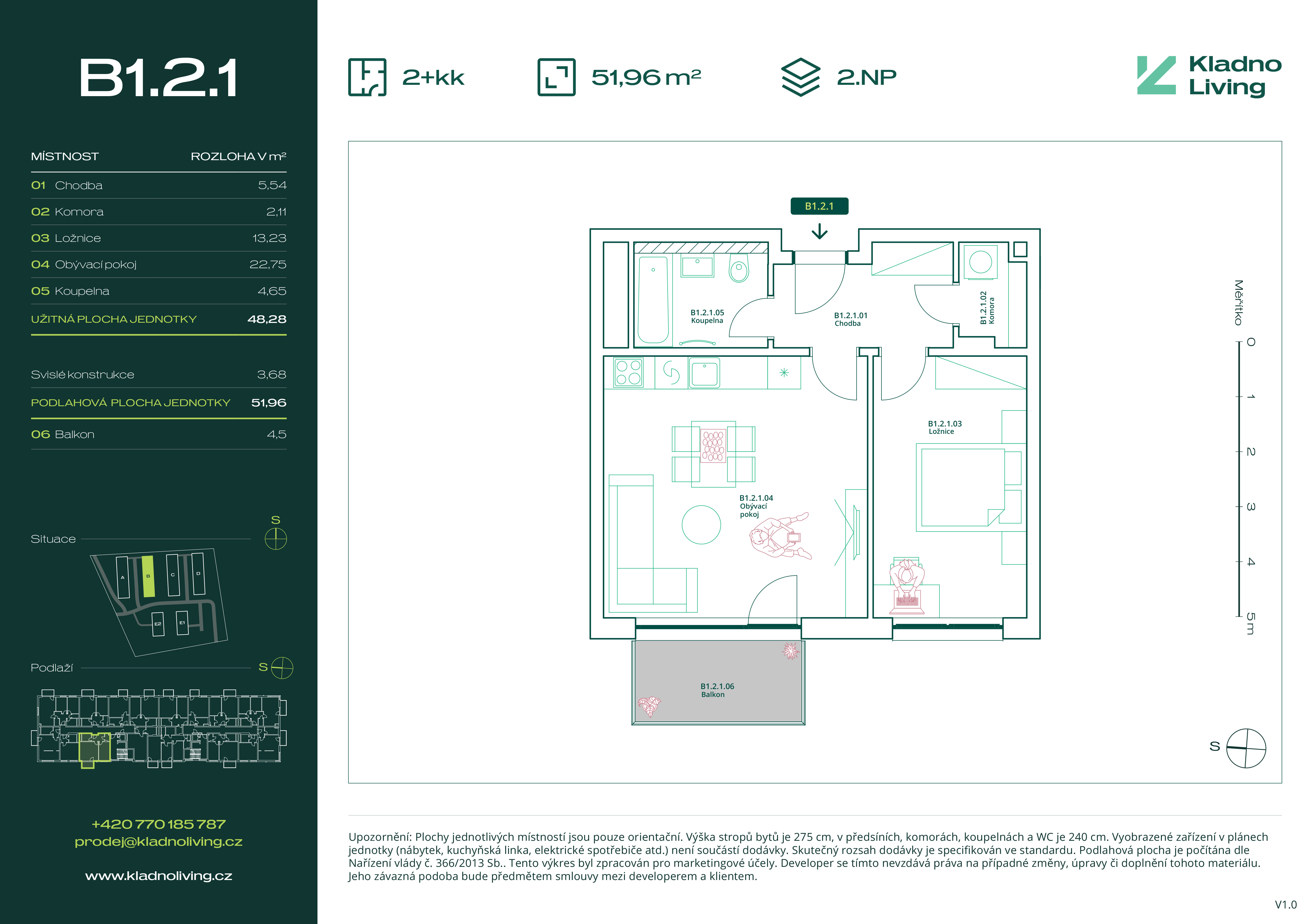 | KL-B121 | 2+kk | 1. patro | 48 m2 | 52 m2 | Ne / 5 m2 / Ne | Ne | 5 790 000 Kč | Detail |