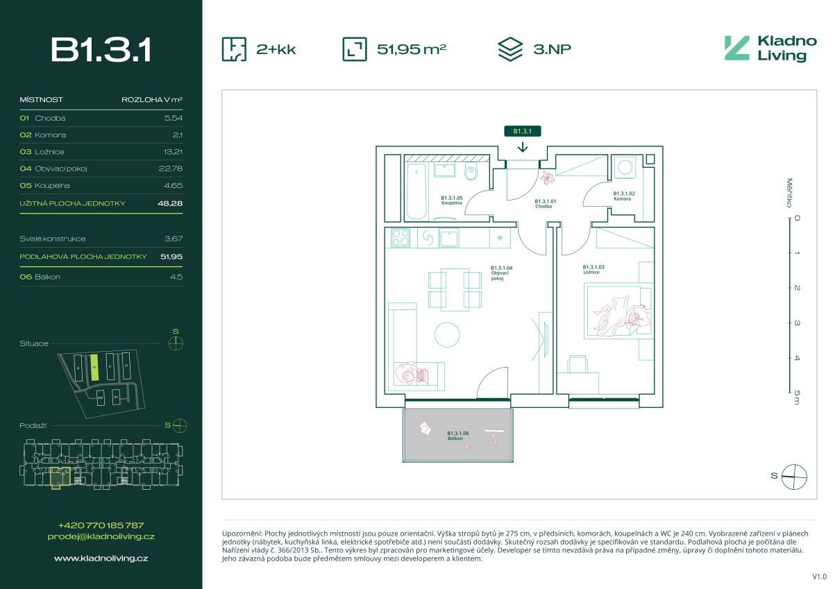 Nabízíme ke koupi moderní byt 2+kk o podlahové ploše 52 m² s balkonem 4,5 m² v rezidenčním projektu Kladno Living, který vzniká v jedné z nejatraktivnějších lokalit města Kladno – Kročehlavy. Tento nový developerský projekt představuje jedinečnou příležitost pro ty, kteří hledají nové byty v Kladně nebo investici do nemovitosti s vysokým potenciálem zhodnocení.