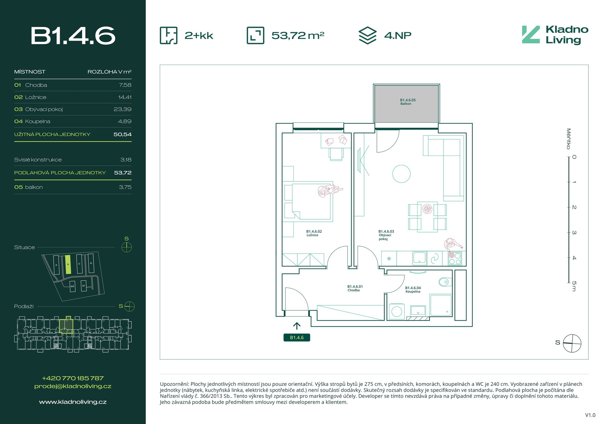 Nabízíme ke koupi moderní byt 2+kk o podlahové ploše 53,7 m² s balkonem 3,8 m² v rezidenčním projektu Kladno Living, který vzniká v jedné z nejatraktivnějších lokalit města Kladno – Kročehlavy. Tento nový developerský projekt představuje jedinečnou příležitost pro ty, kteří hledají nové byty v Kladně nebo investici do nemovitosti s vysokým potenciálem zhodnocení.