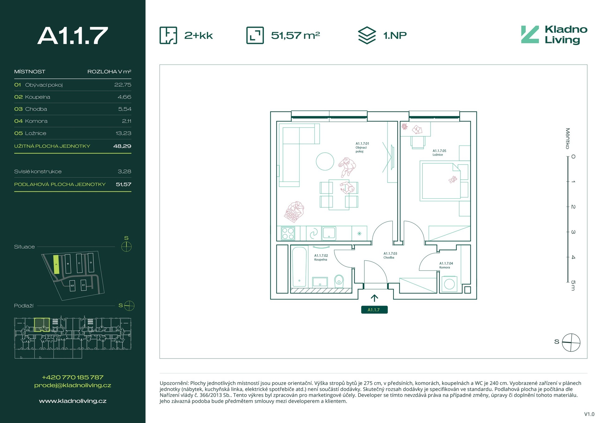 Nabízíme ke koupi moderní byt 2+kk o podlahové ploše 51,6 m² v rezidenčním projektu Kladno Living, který vzniká v jedné z nejatraktivnějších lokalit města Kladno – Kročehlavy. Tento nový developerský projekt představuje jedinečnou příležitost pro ty, kteří hledají nové byty v Kladně nebo investici do nemovitosti s vysokým potenciálem zhodnocení.